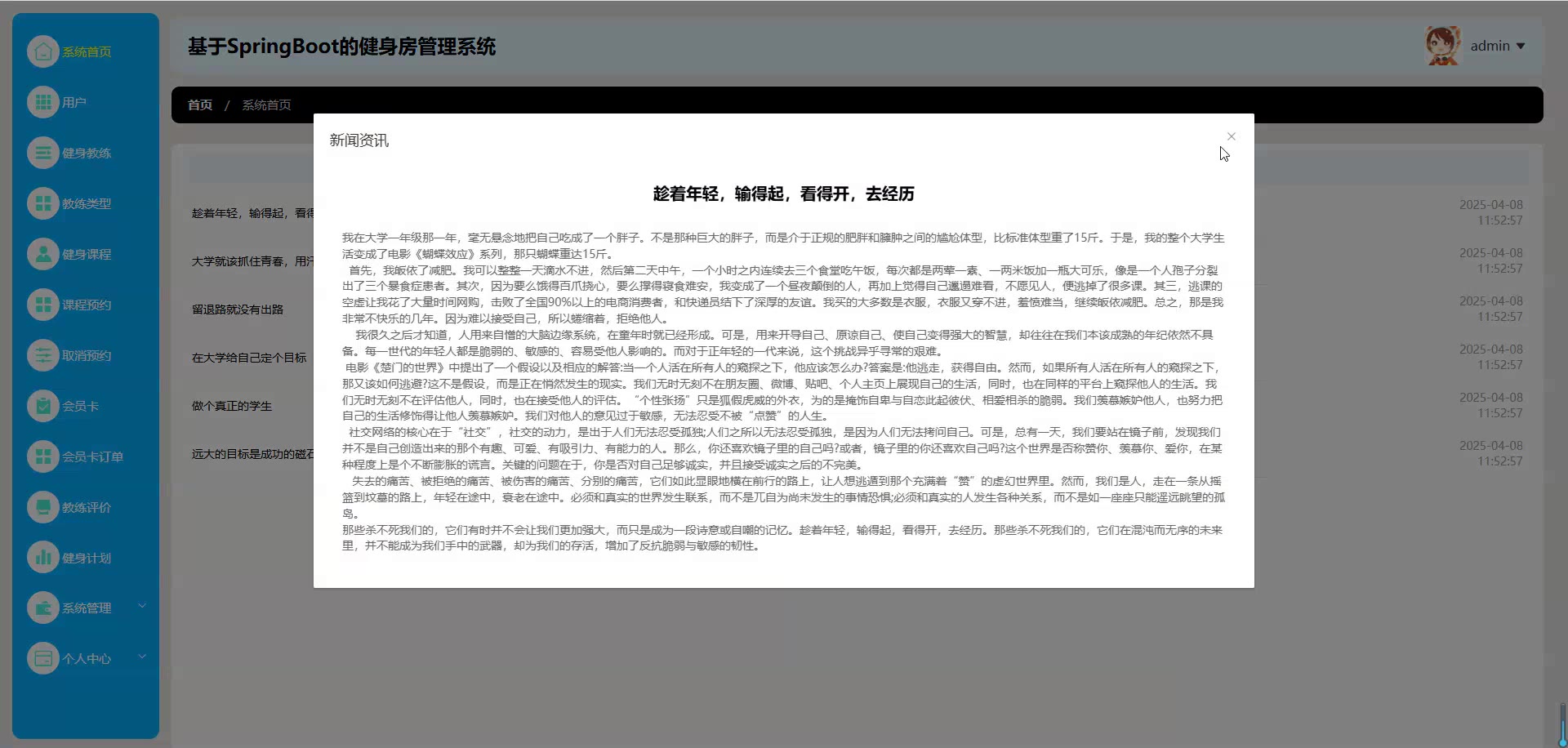 基于SpringBoot Vue的健身房管理系统源码+论文springboot1852