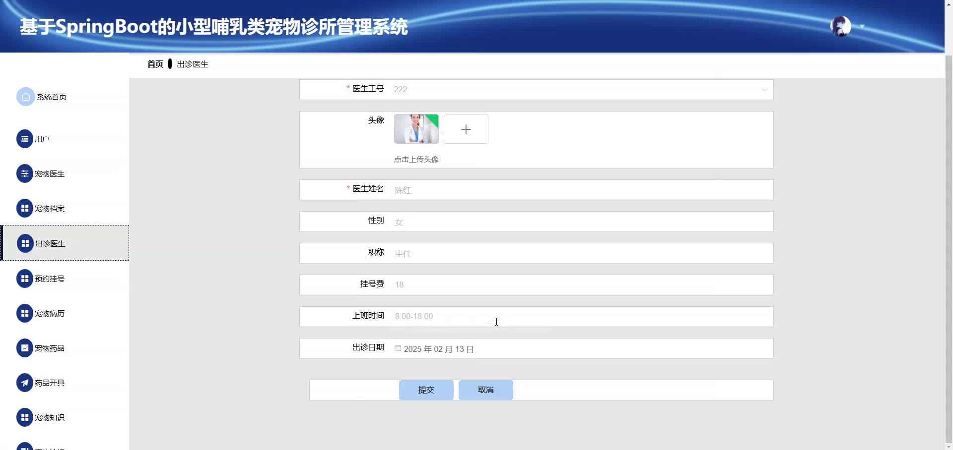 基于SpringBoot Vue小型哺乳类宠物诊所管理系统源码+答辩PPT+论文springboot1920