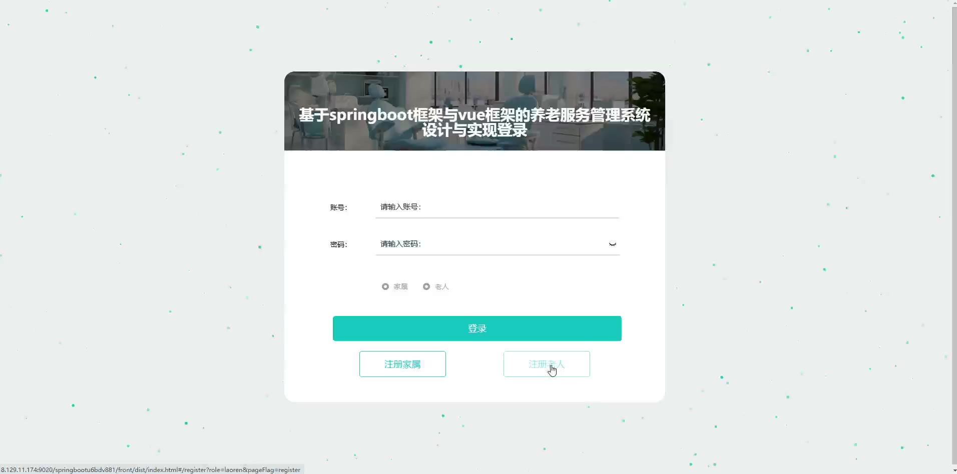 基于springboot框架与vue框架的养老服务管理系统源码(提供导入教程+讲解)springboot2308