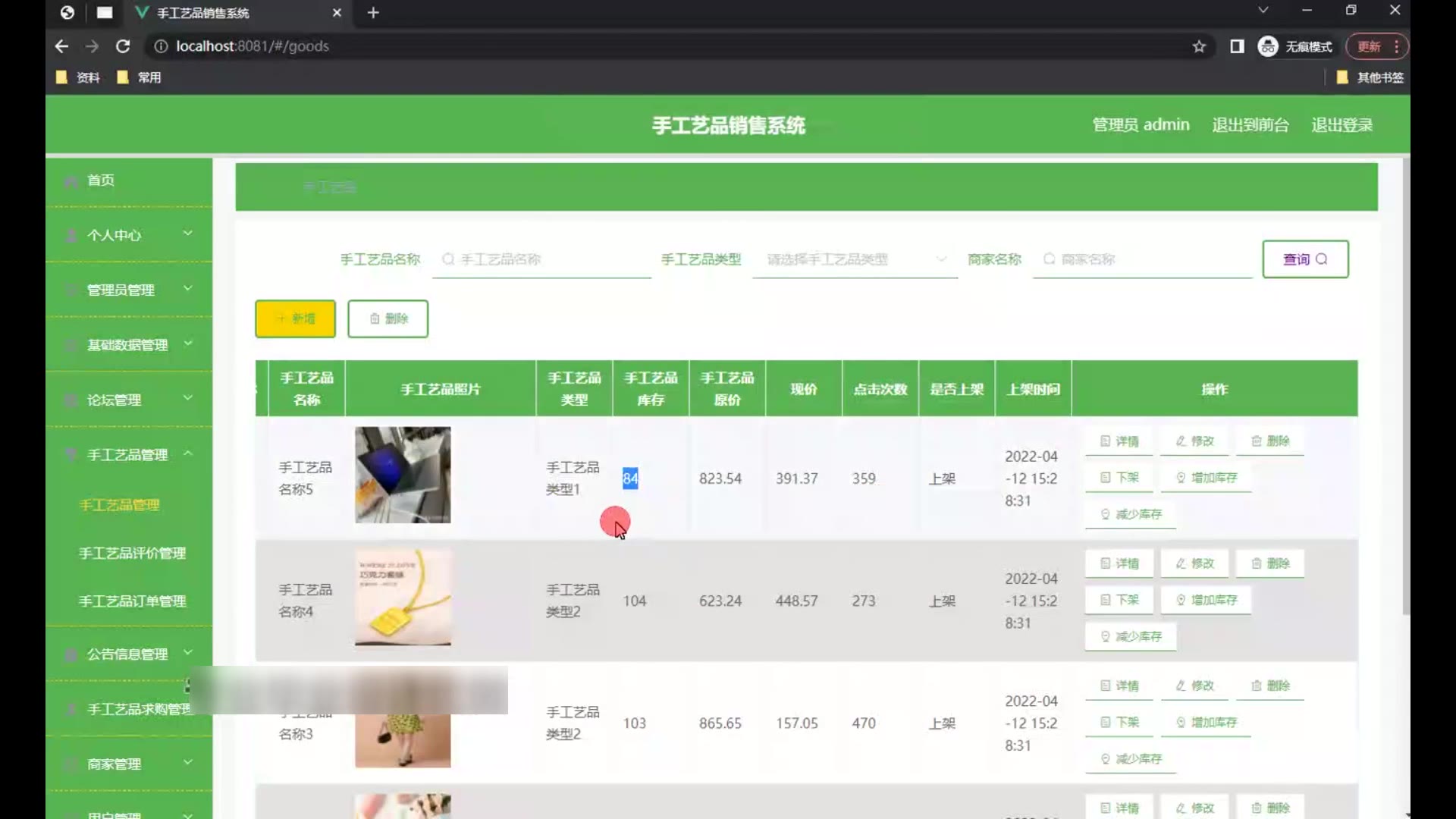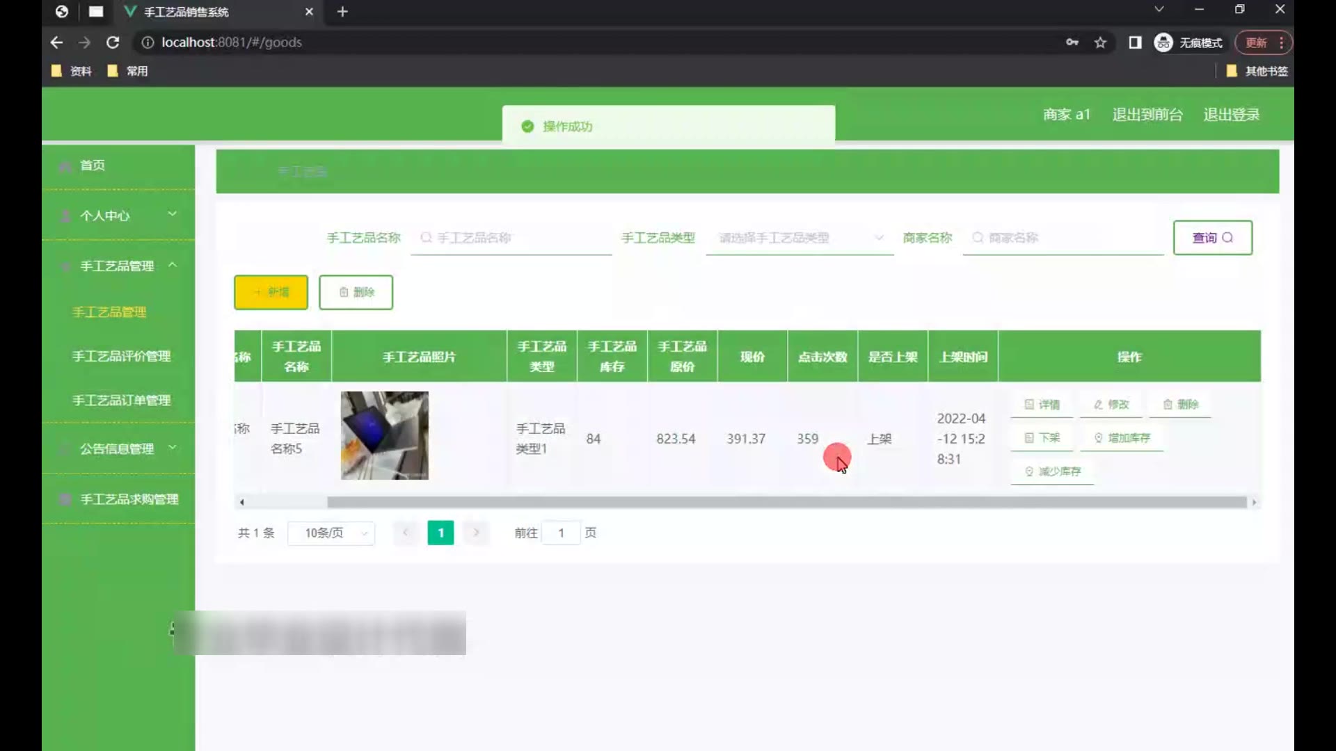 springboot手工艺品销售系统源码和论文1702