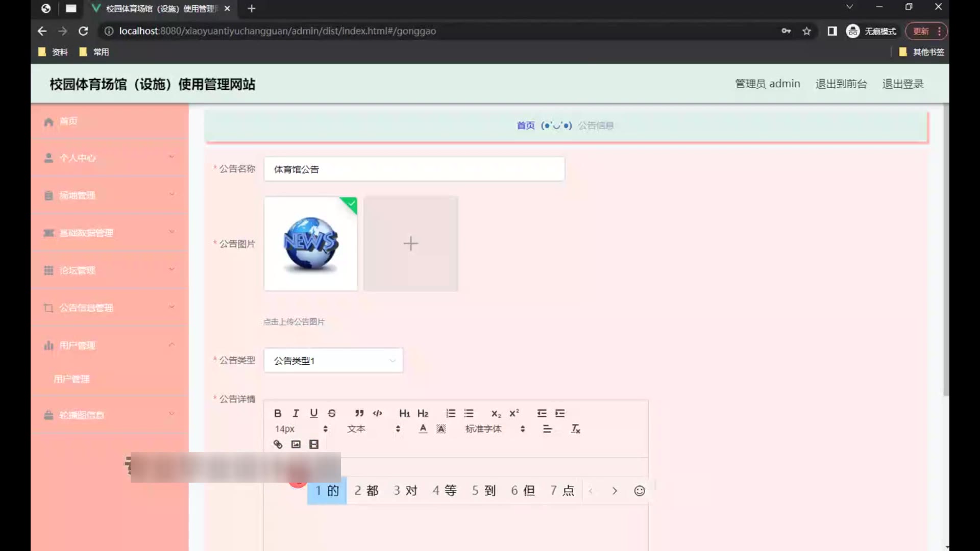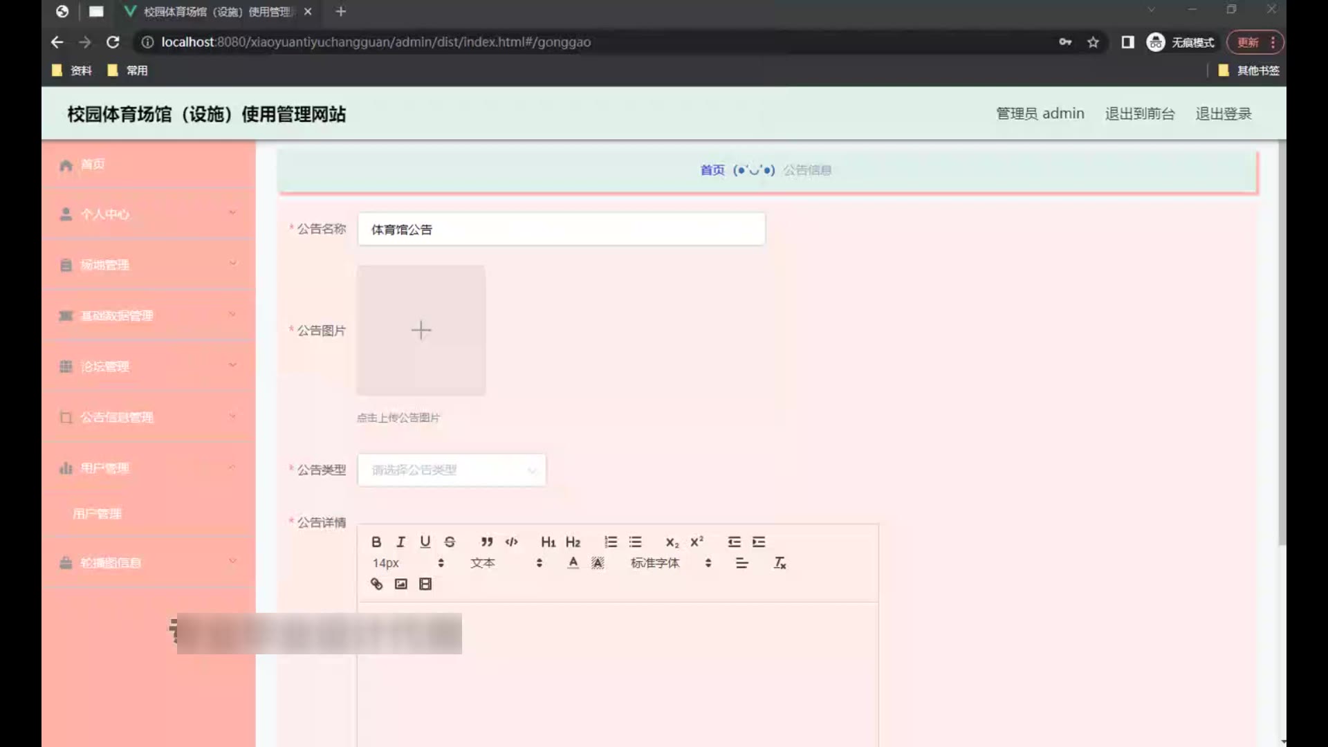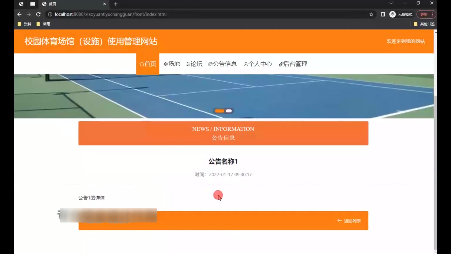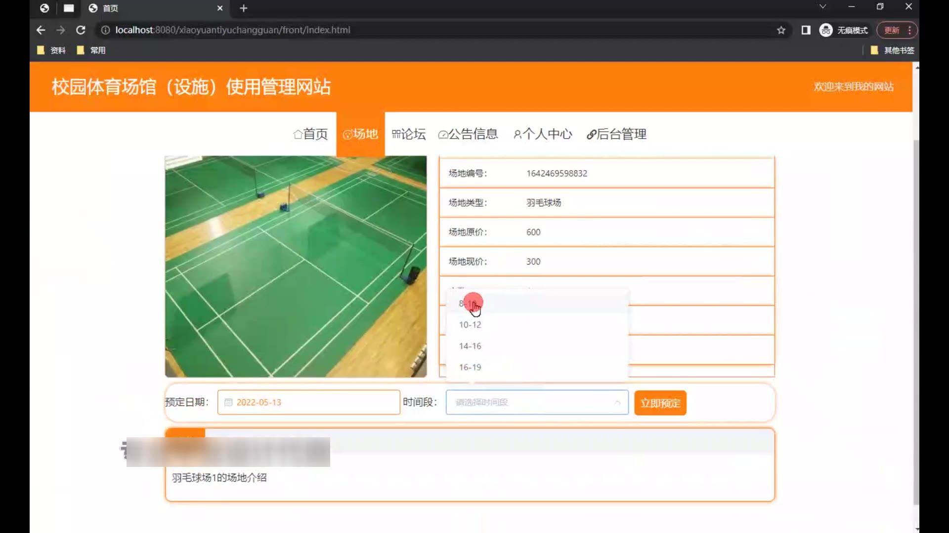 springboot校园体育场馆(设施)使用管理网站源码和论文1727