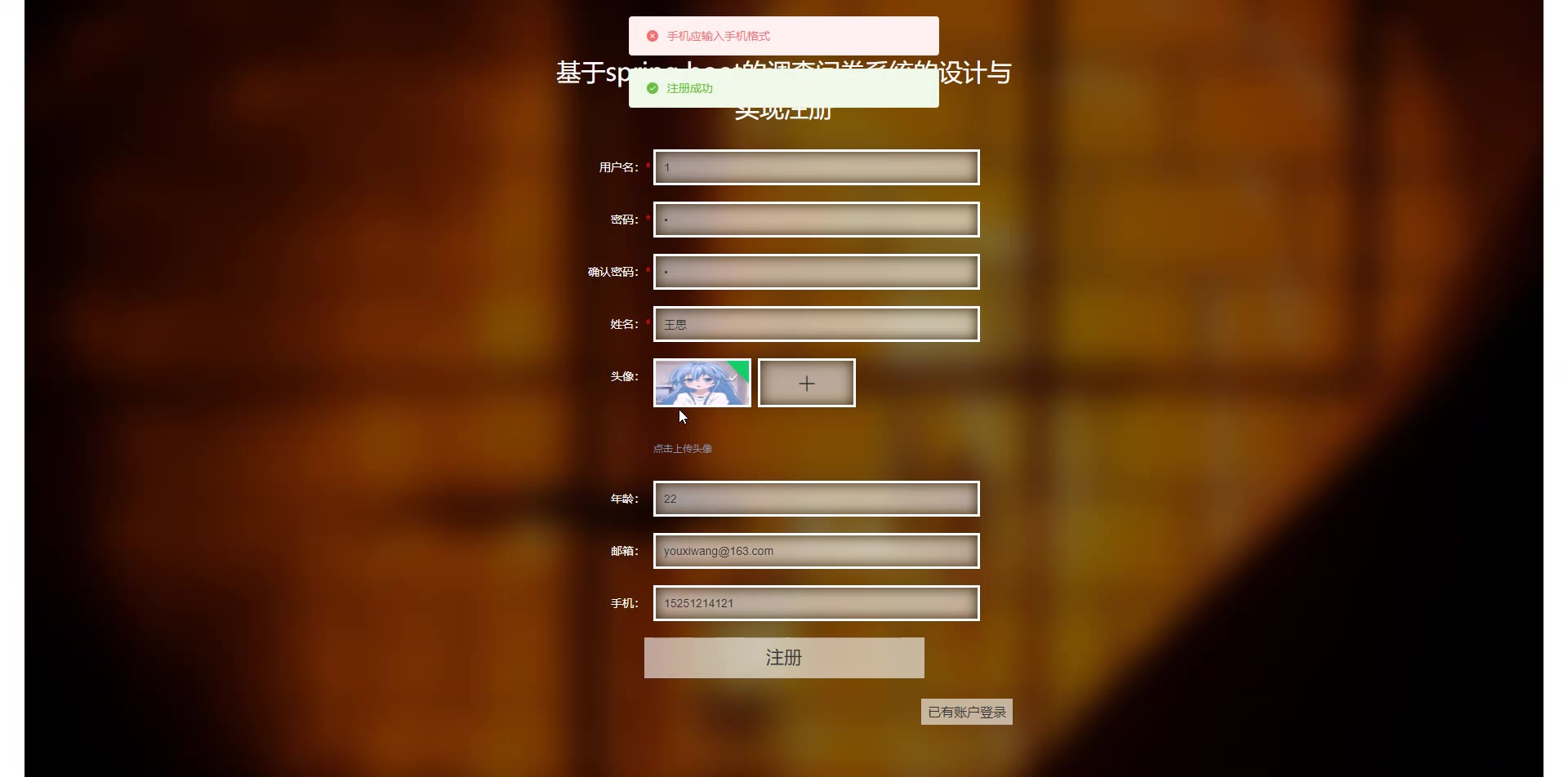 技术: springboot +vue