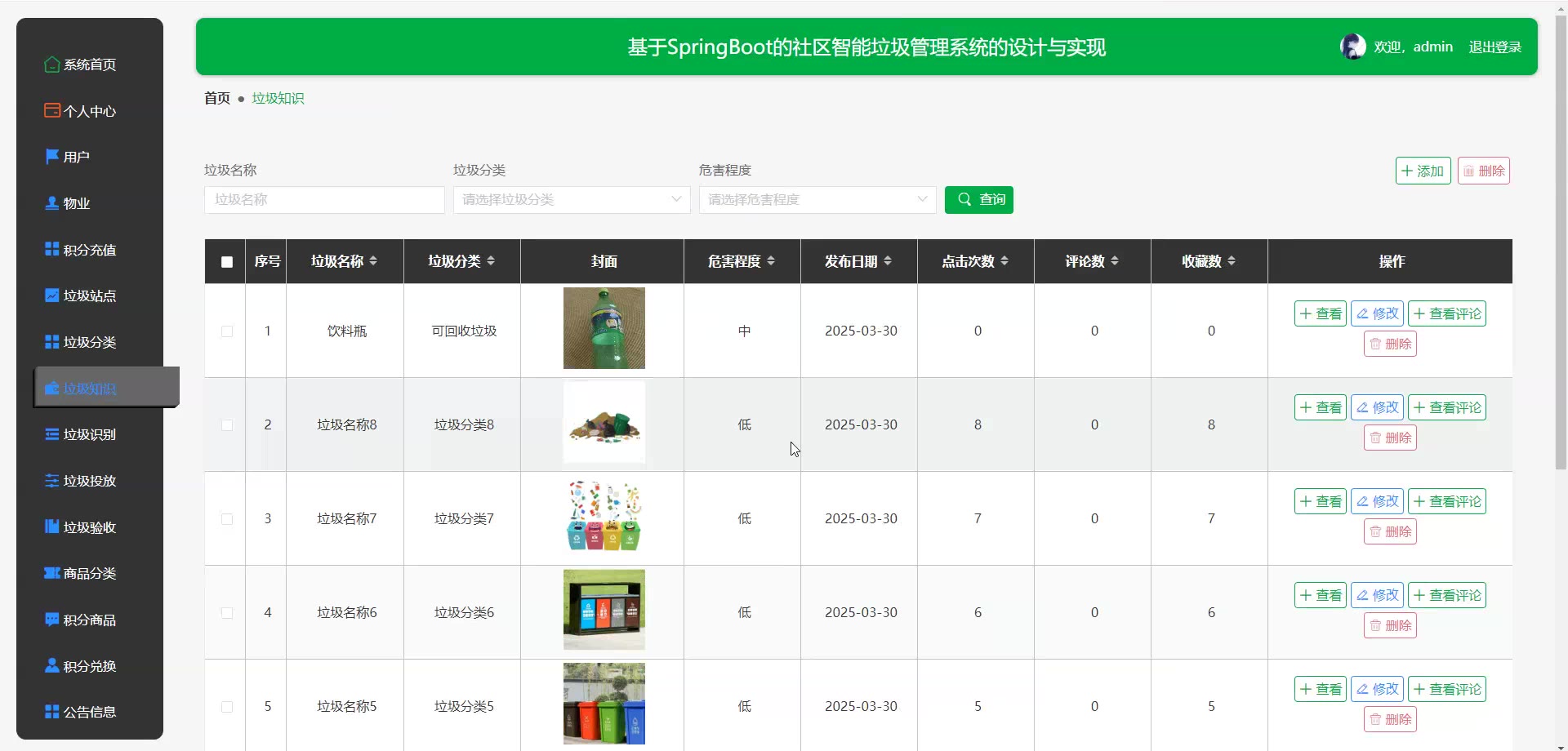 基于SpringBoot vue的社区智能垃圾管理系统源码+论文springboot1766