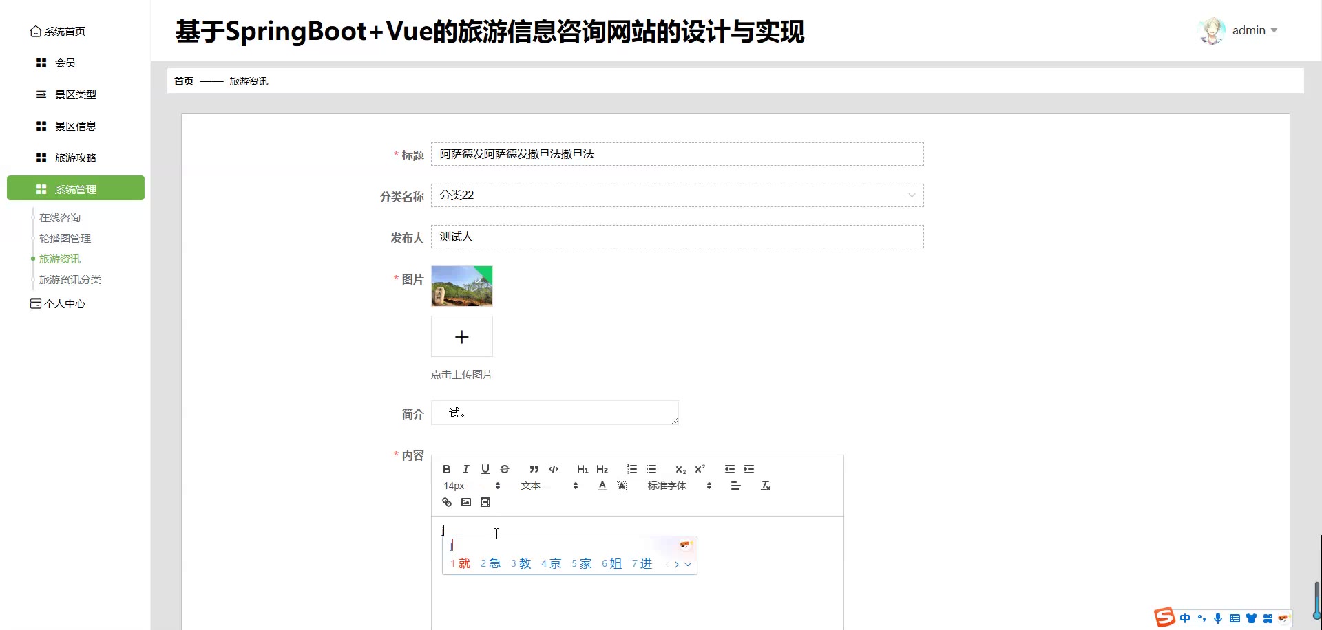 基于SpringBoot+Vue的旅游信息咨询网站源码+论文springboot1774