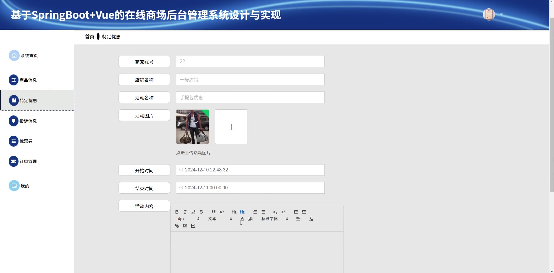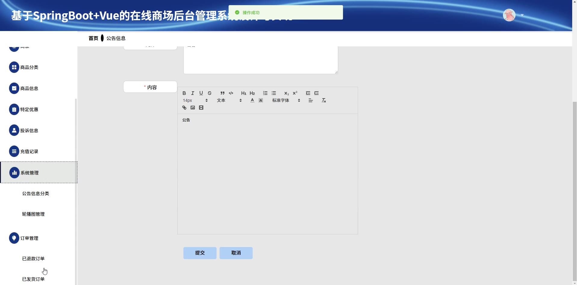 基于SpringBoot+Vue的在线商场后台管理系统源码+论文springboot1777