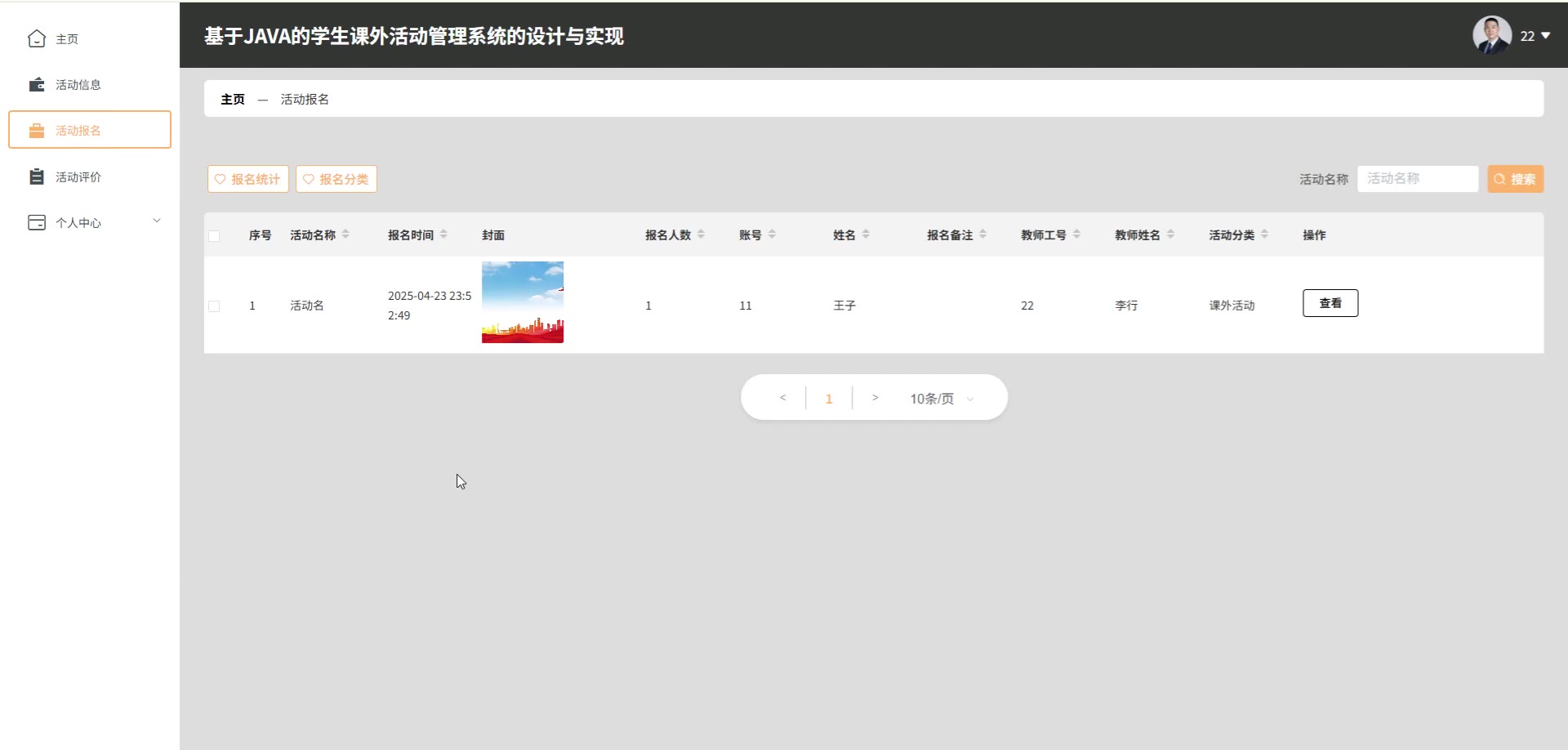 基于JAVA的SpringBoot Vue学生课外活动管理系统源码+论文springboot1791
