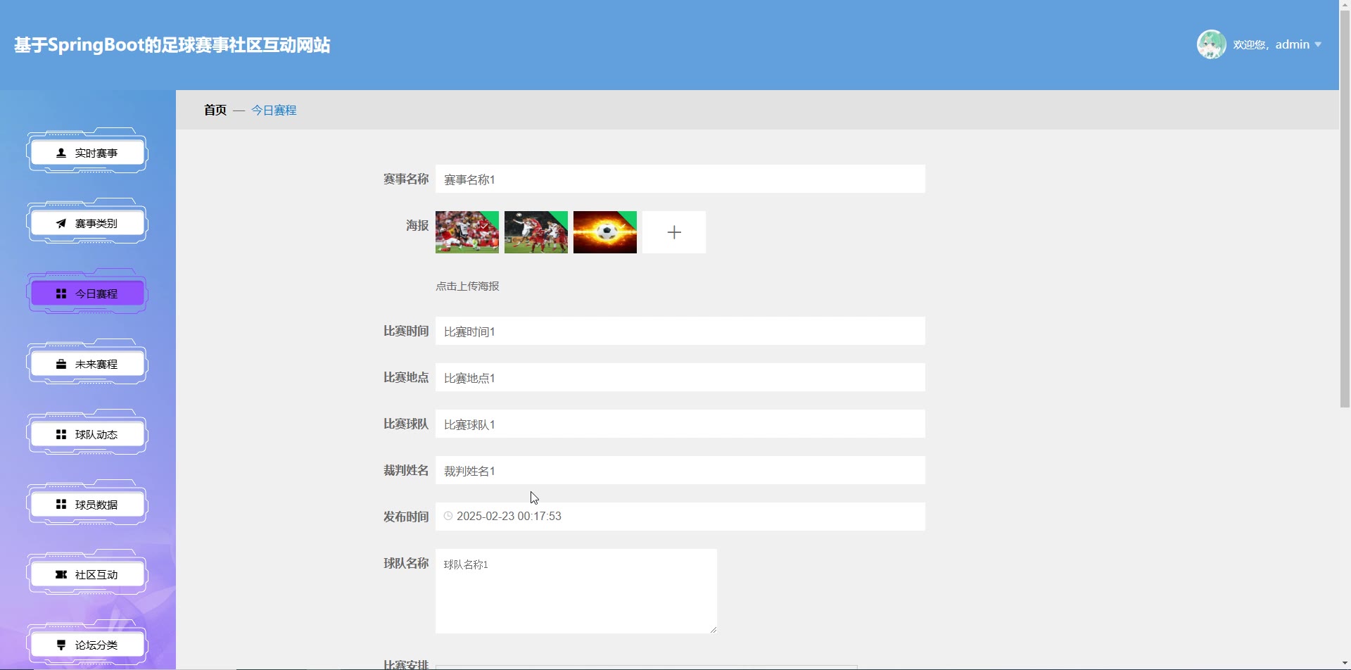 基于SpringBoot Vue的足球赛事社区互动网站源码+论文springboot1804