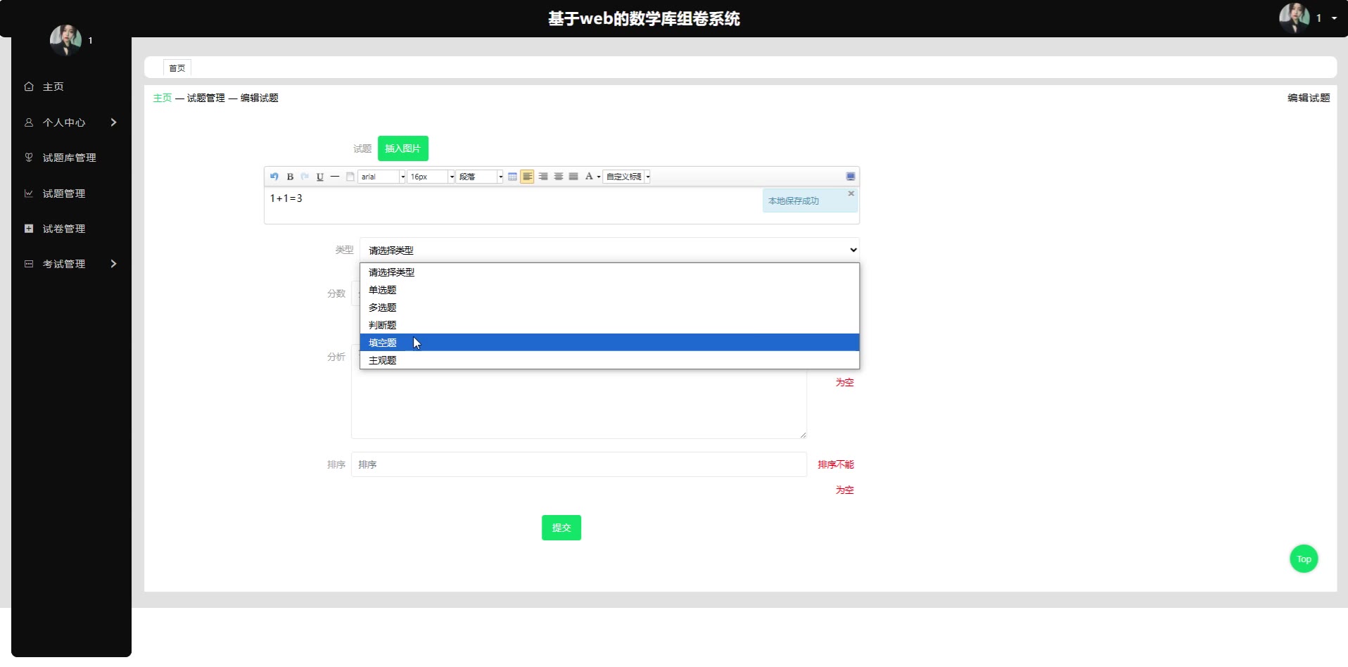 基于web的SpringBoot Vue数学库组卷系统Java题库管理源码+论文springboot1806