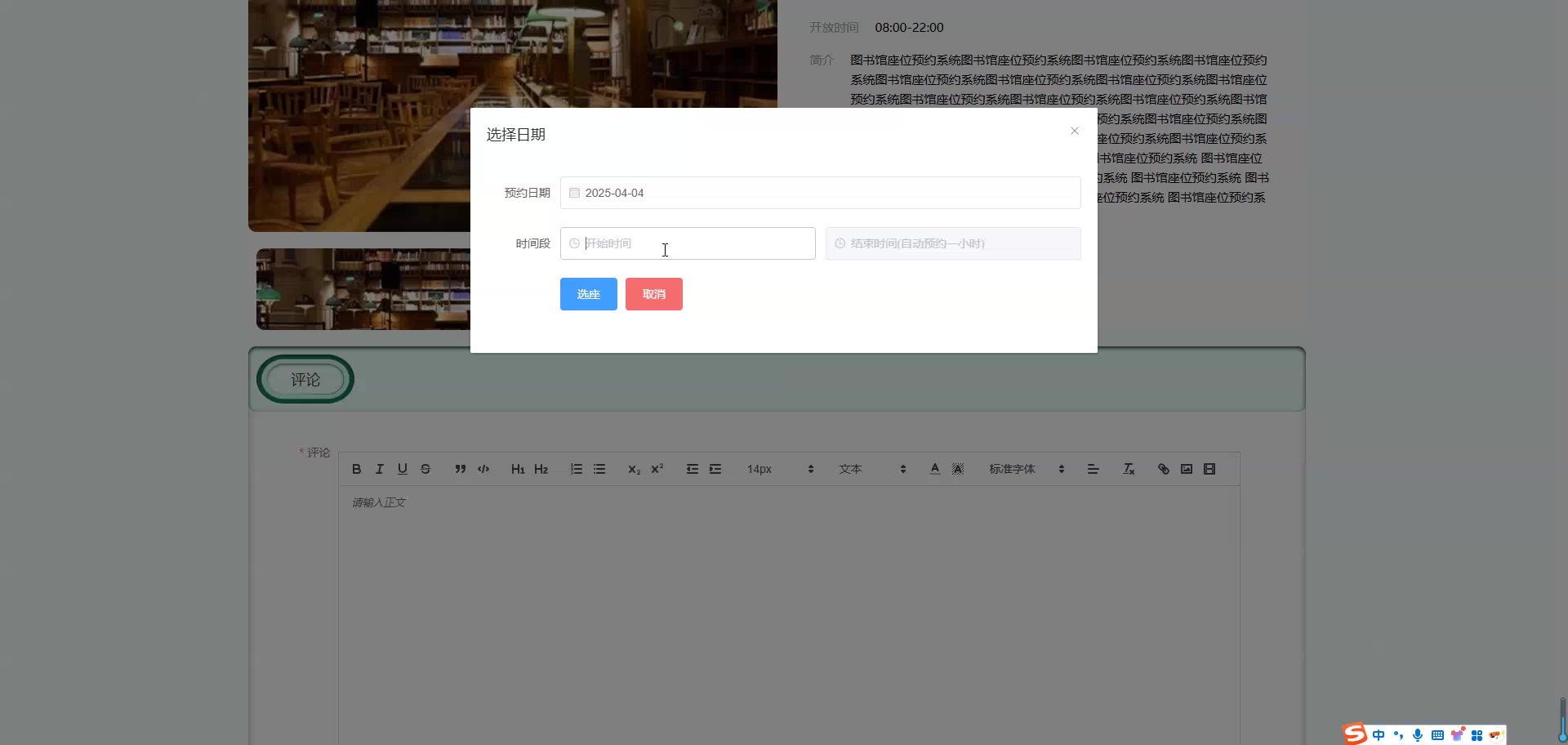 基于SpringBoot Vue图书馆座位预约系统源码+论文springboot1814