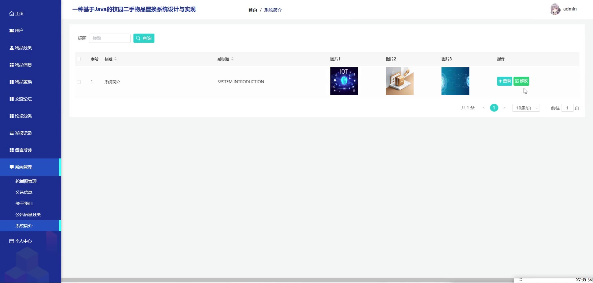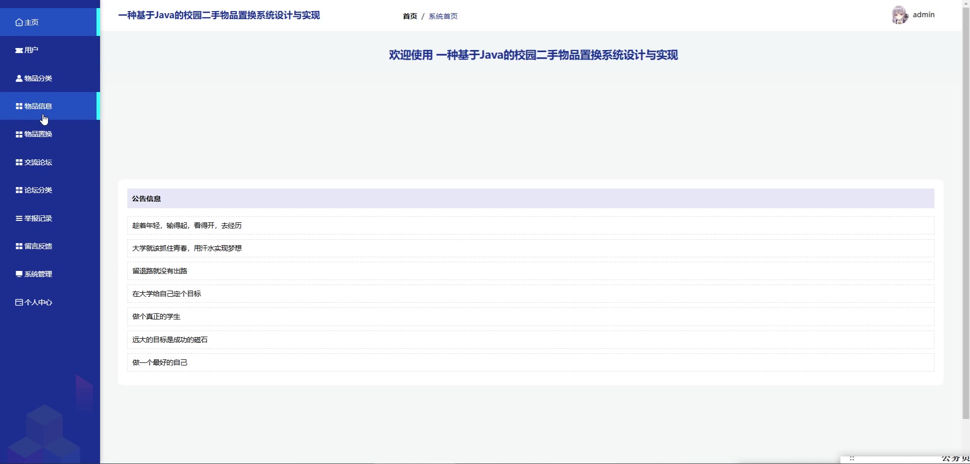 基于SpringBoot Vue校园二手物品置换系统源码+论文springboot1817