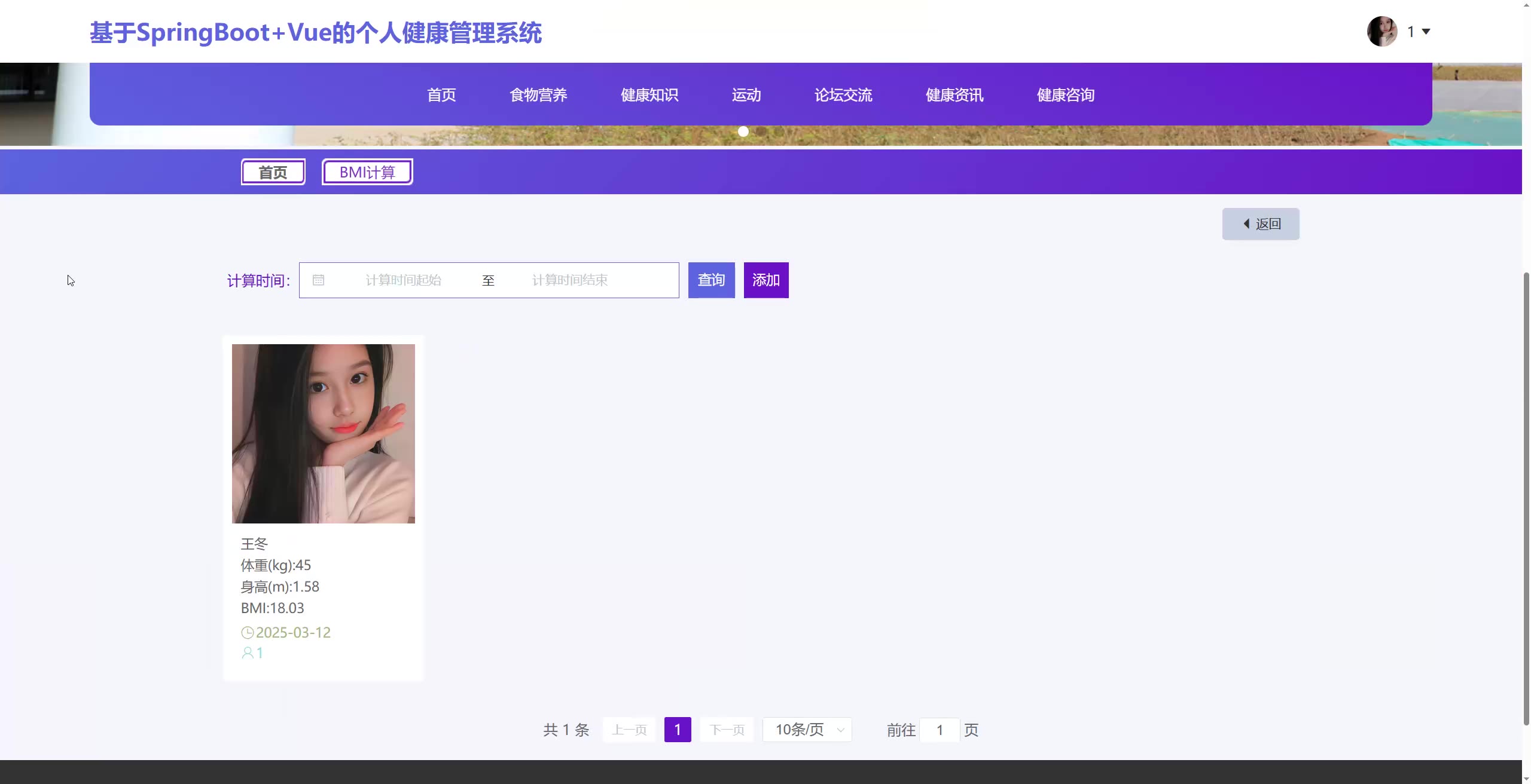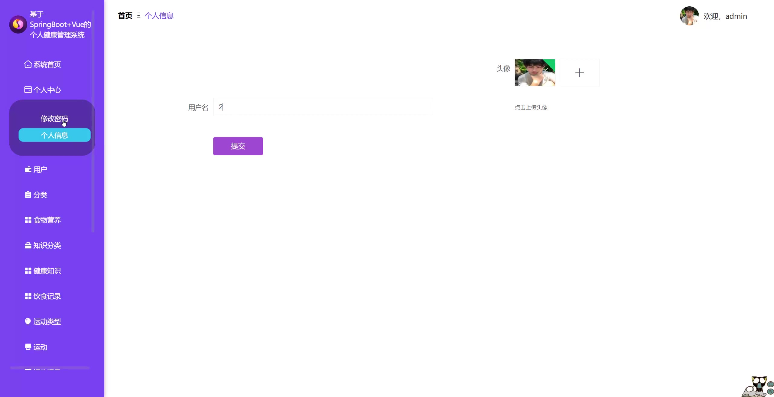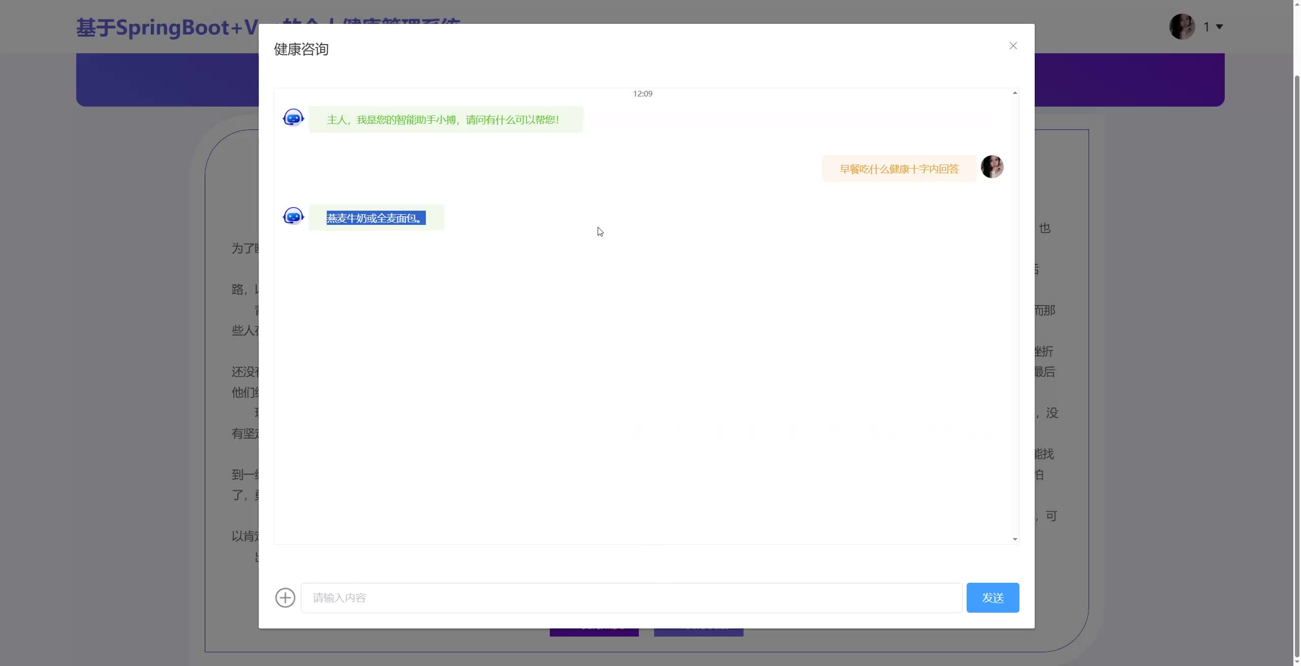 基于SpringBoot+Vue的个人健康管理系统源码+论文springboot1830