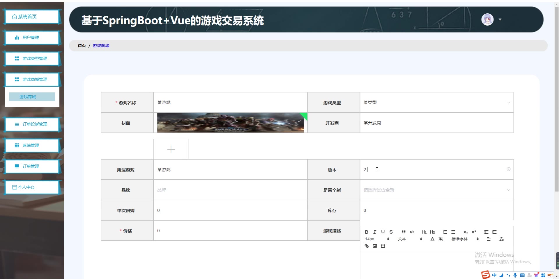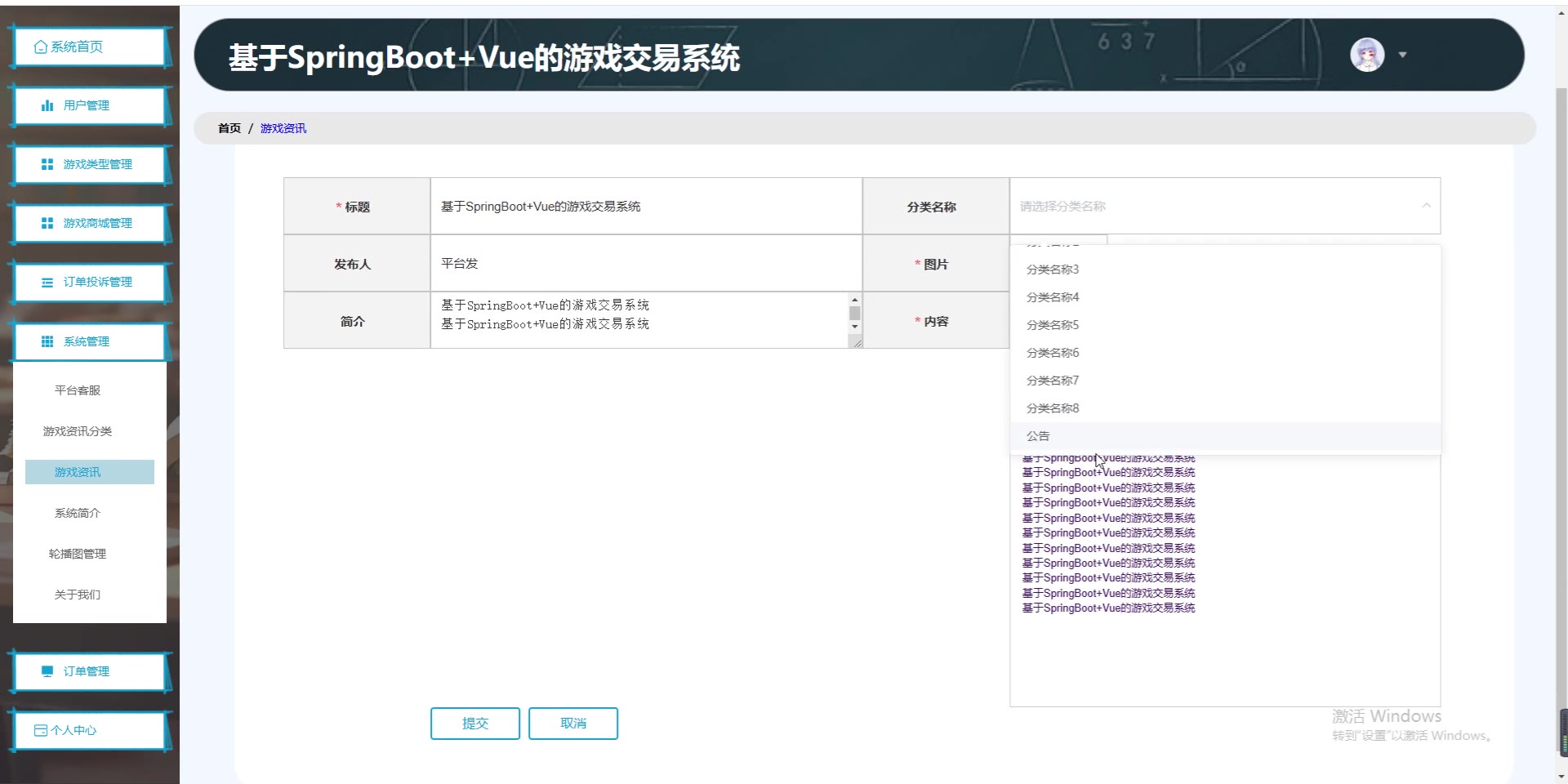 基于SpringBoot+Vue的游戏交易系统源码+开题+论文springboot1832