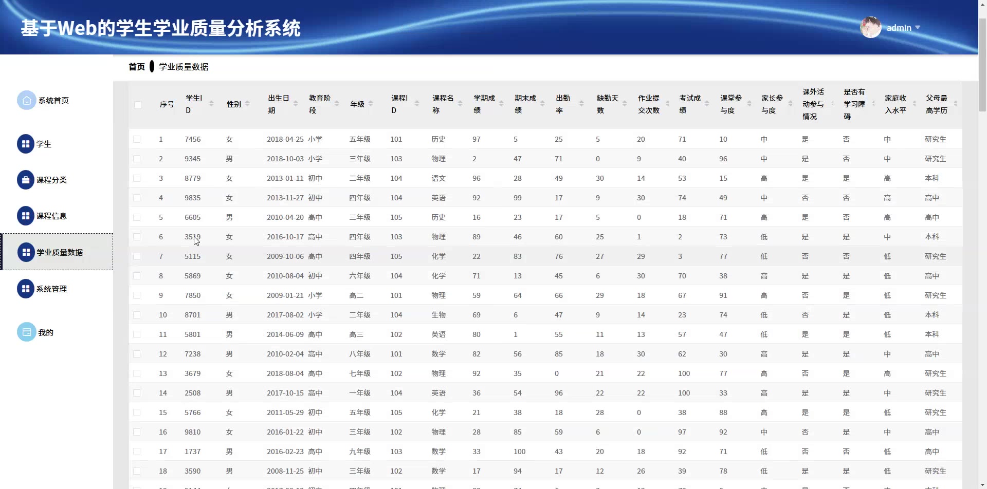 基于Web的SpringBoot Vue学生学业质量分析系统源码+论文springboot1835
