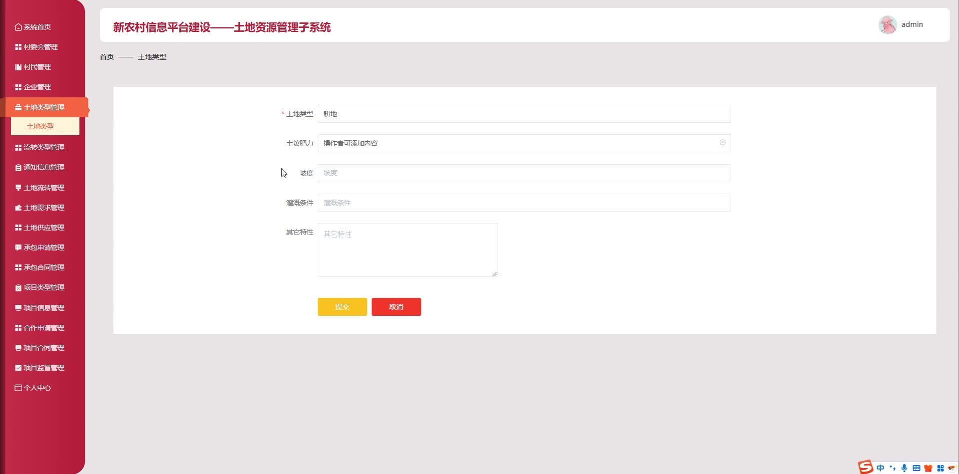 SpringBoot Vue新农村信息平台建设平台java web土地资源管理子系统源码+论文springboot1837
