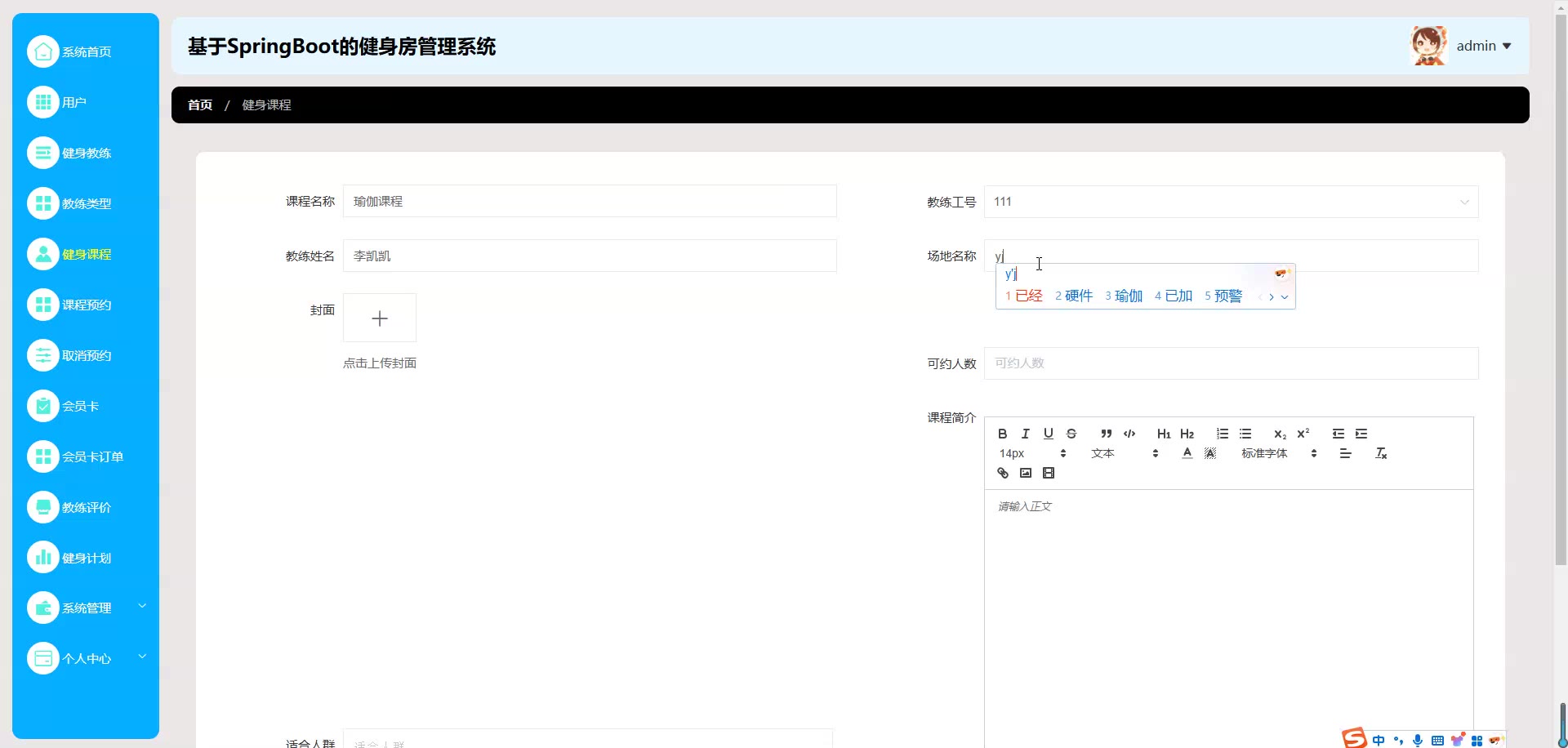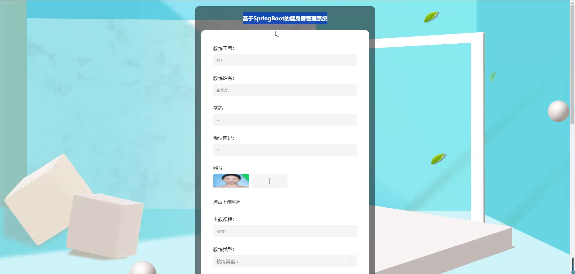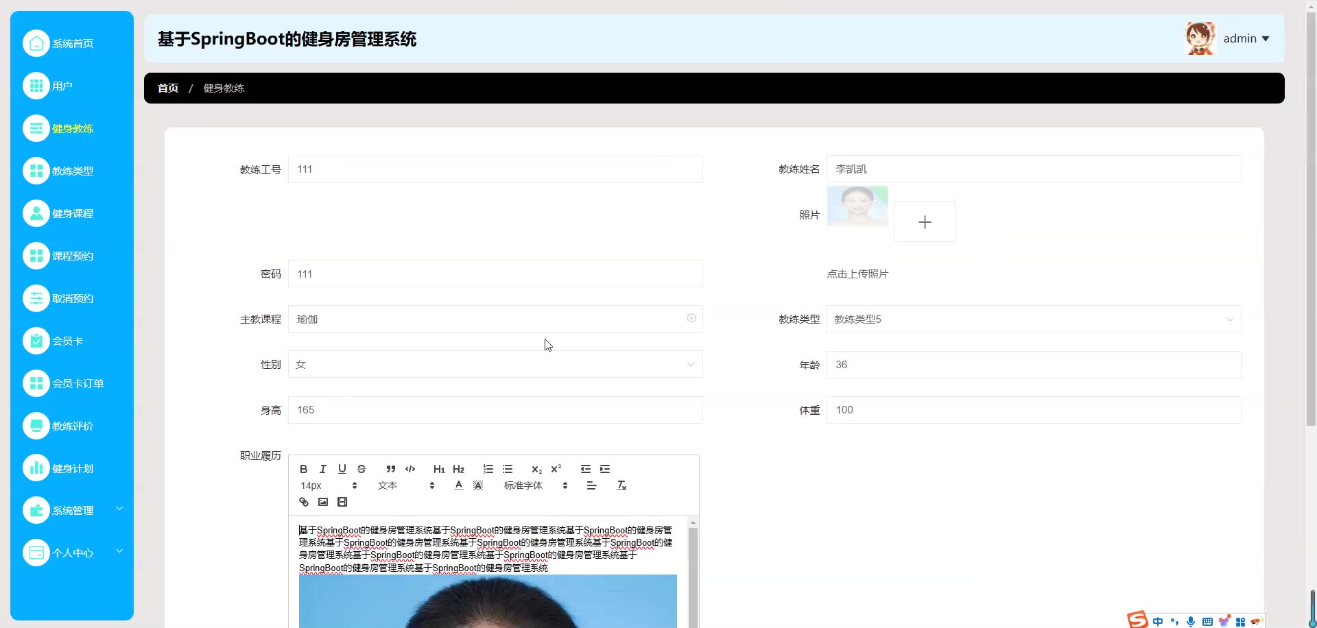 基于SpringBoot Vue的健身房管理系统源码+论文springboot1852