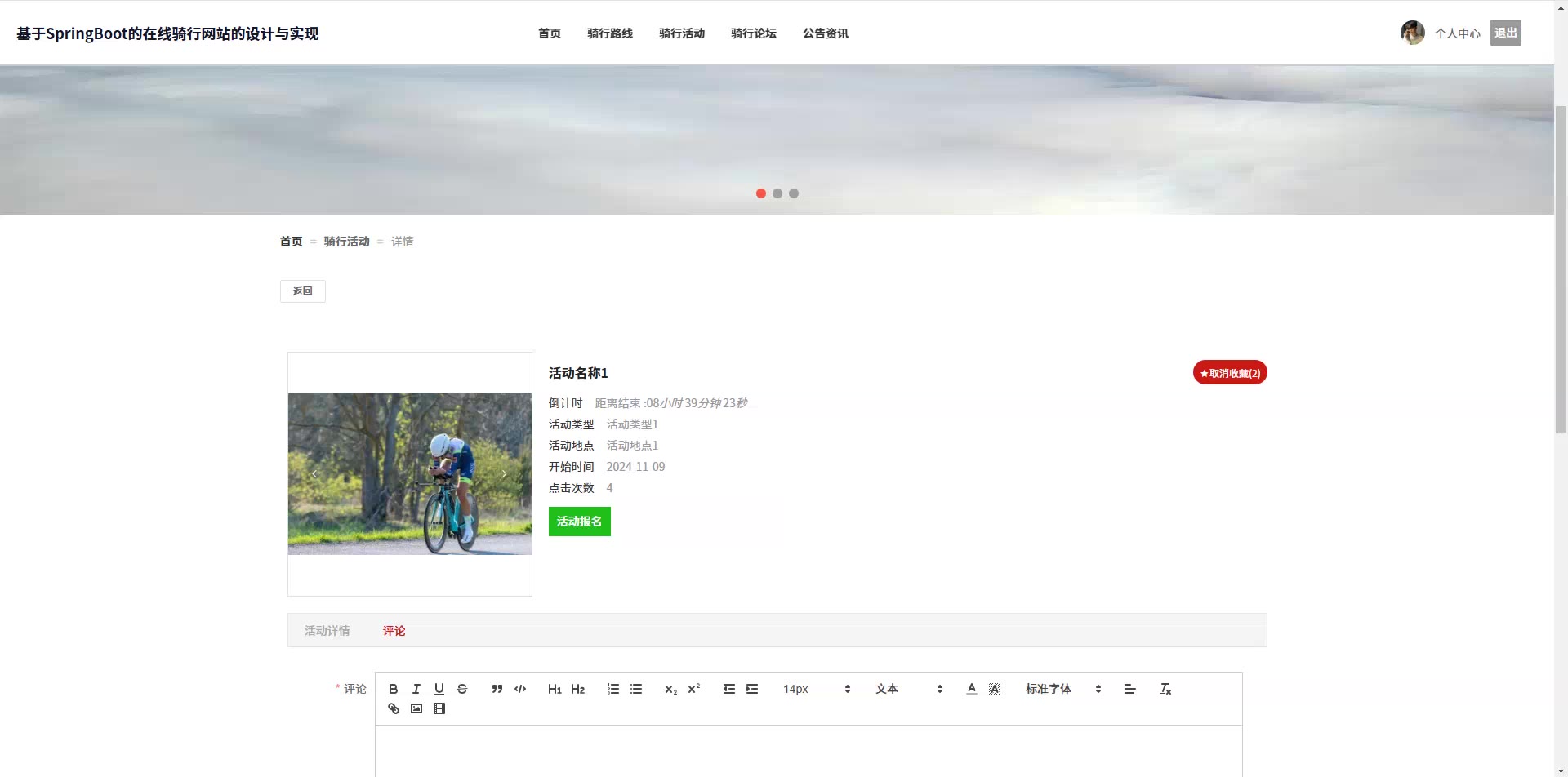 基于SpringBoot Vue的在线骑行网站源码+论文springboot1867