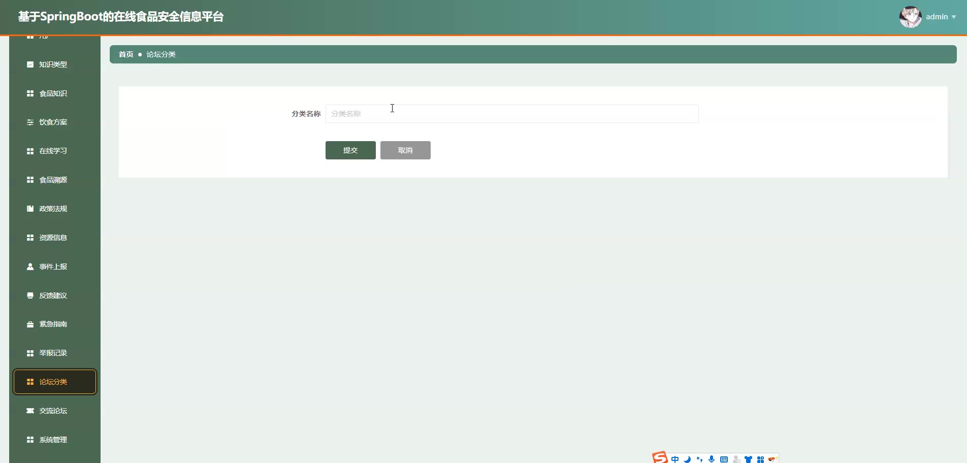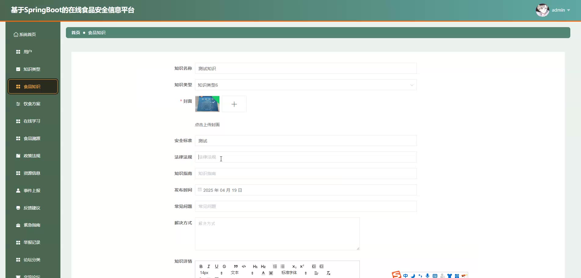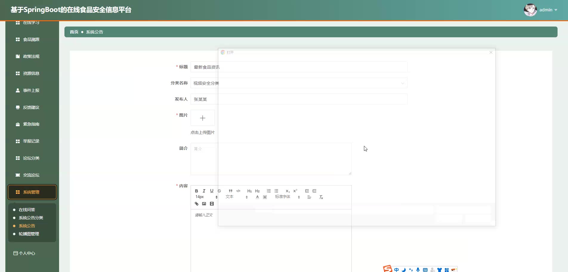 基于SpringBoot Vue的在线食品安全信息平台源码+论文springboot1868