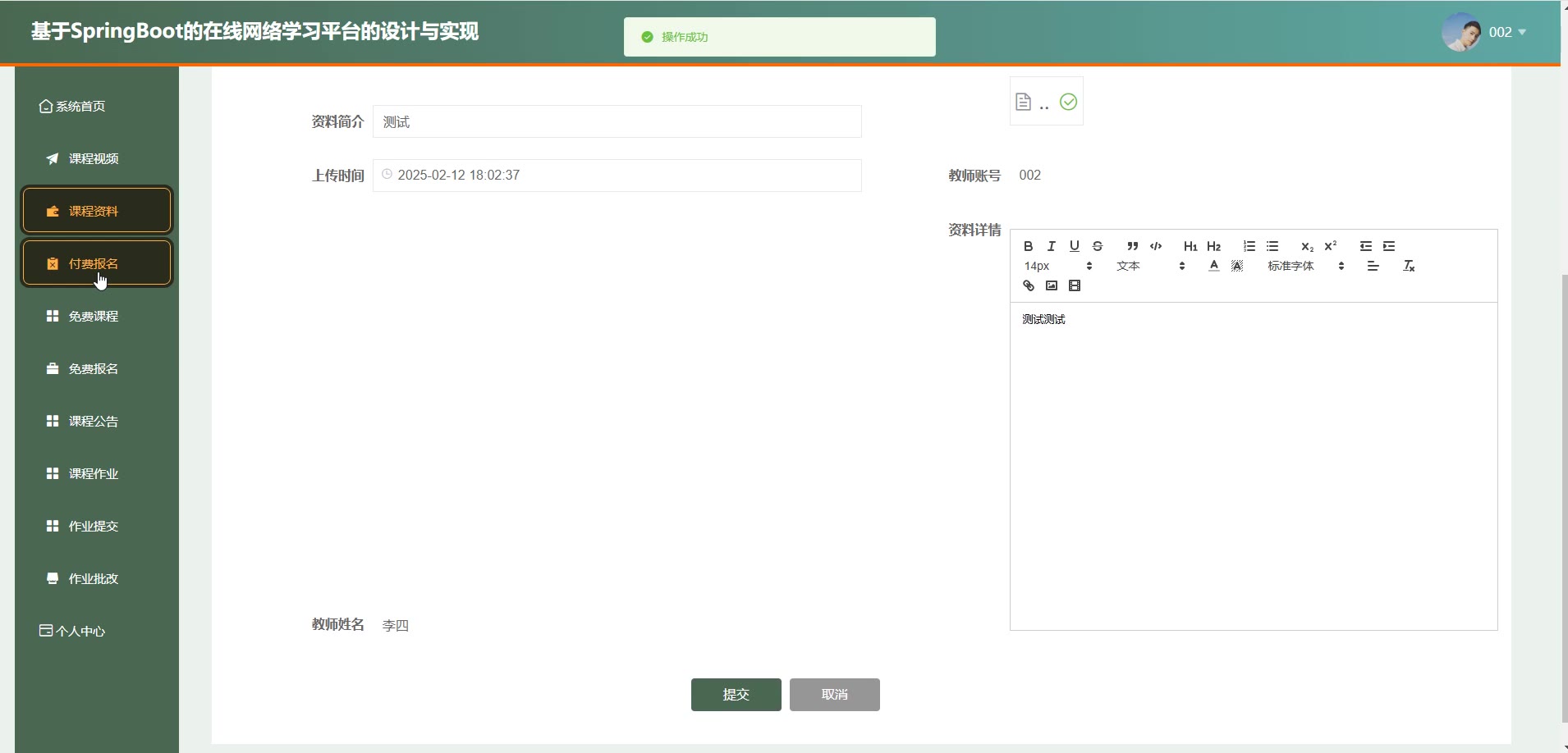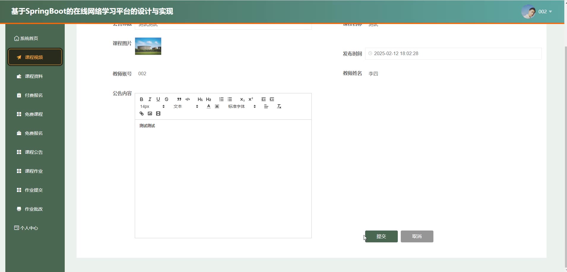 基于SpringBoot Vue的在线网络学习平台源码+论文springboot1869