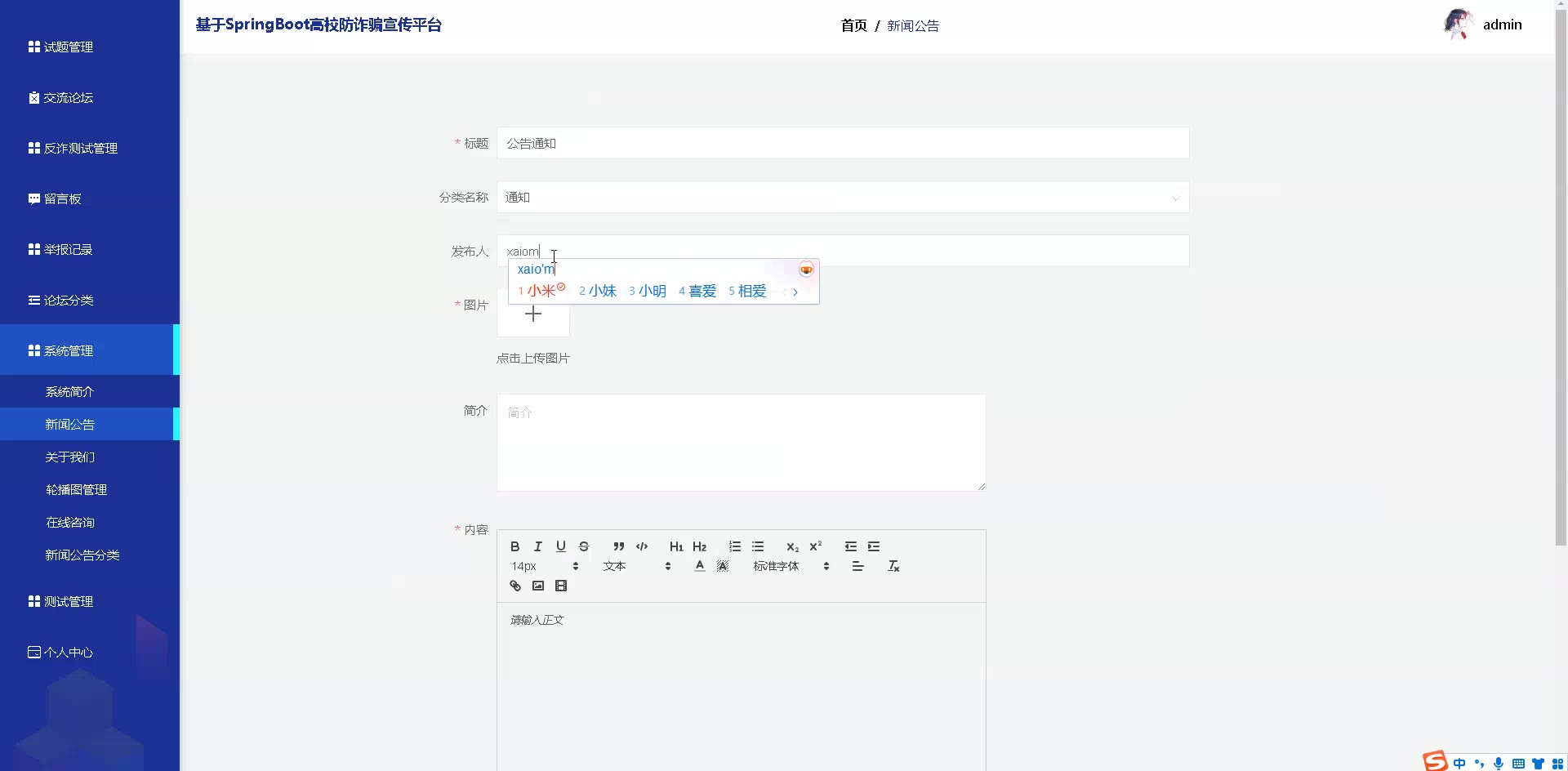基于SpringBoot Vue高校防诈骗宣传平台源码+答辩PPT+论文springboot1877