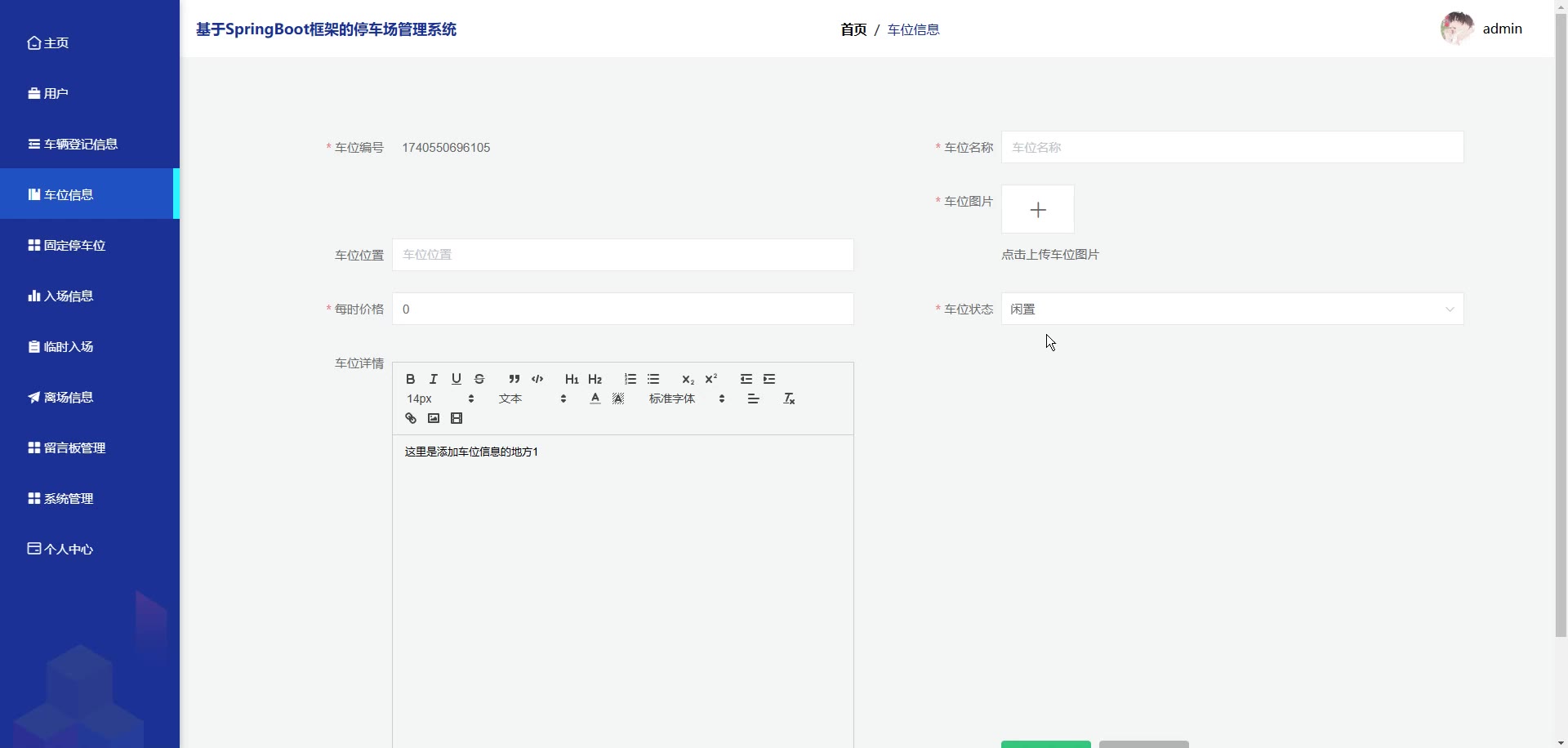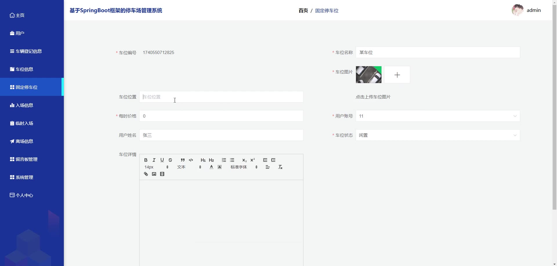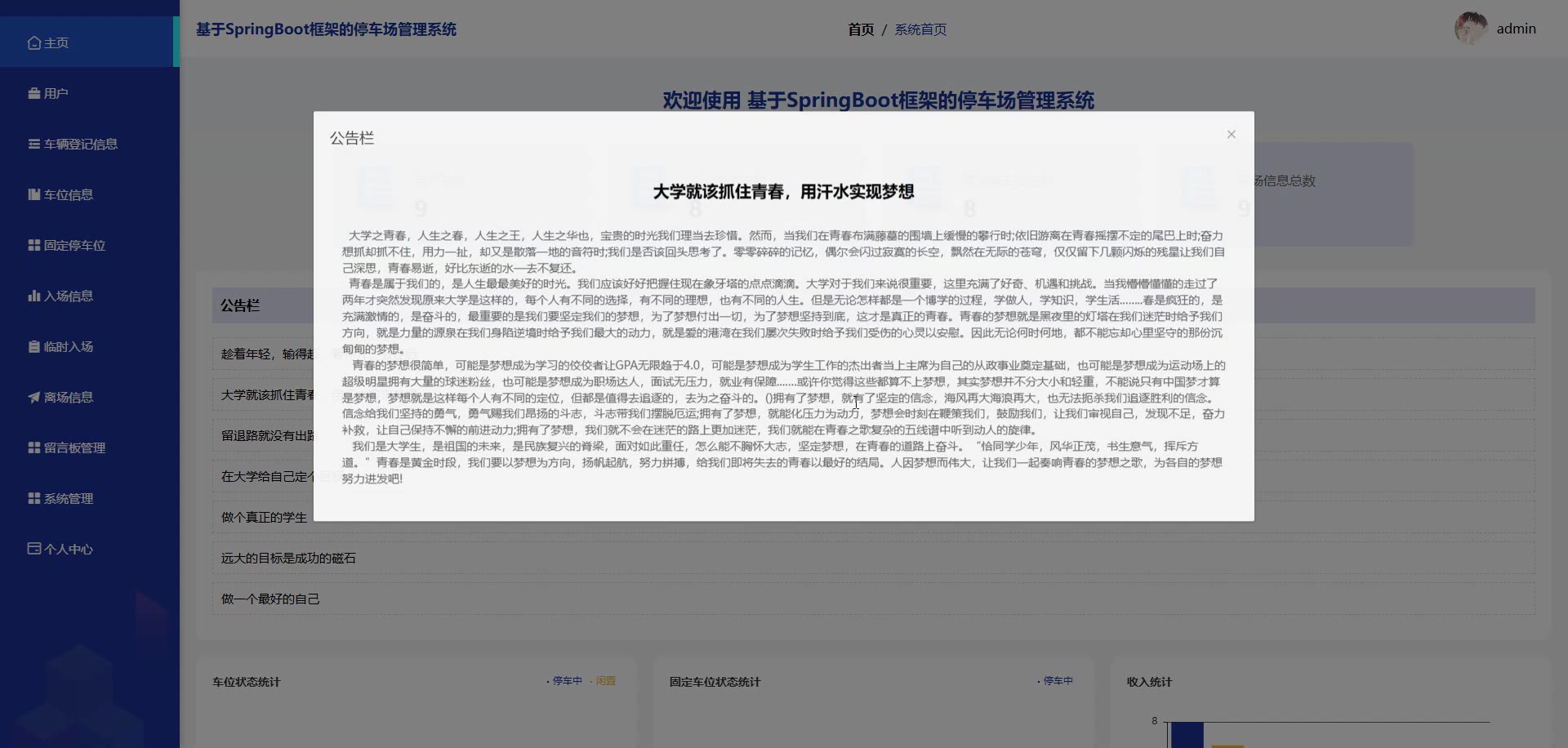 基于SpringBoot Vue框架的停车场管理系统源码+答辩PPT+开题+论文springboot1887