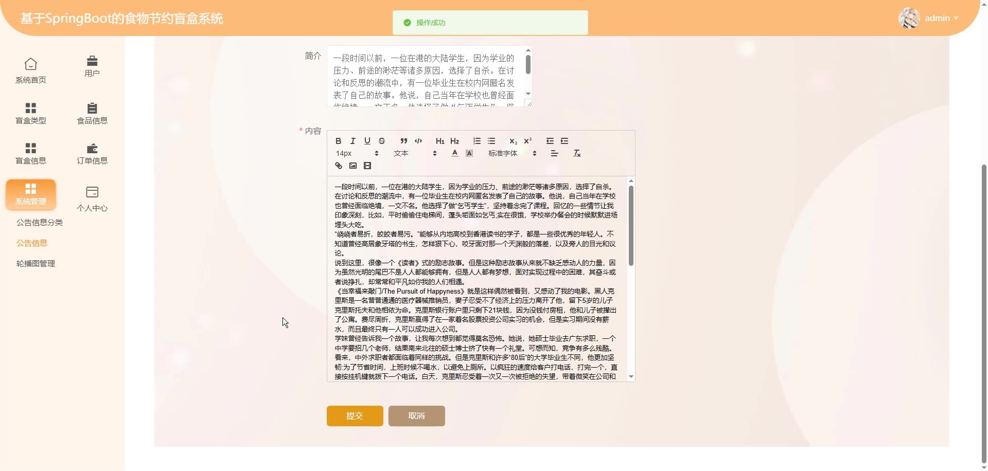 基于SpringBoot Vue的食物节约盲盒系统源码+答辩PPT+论文springboot1898