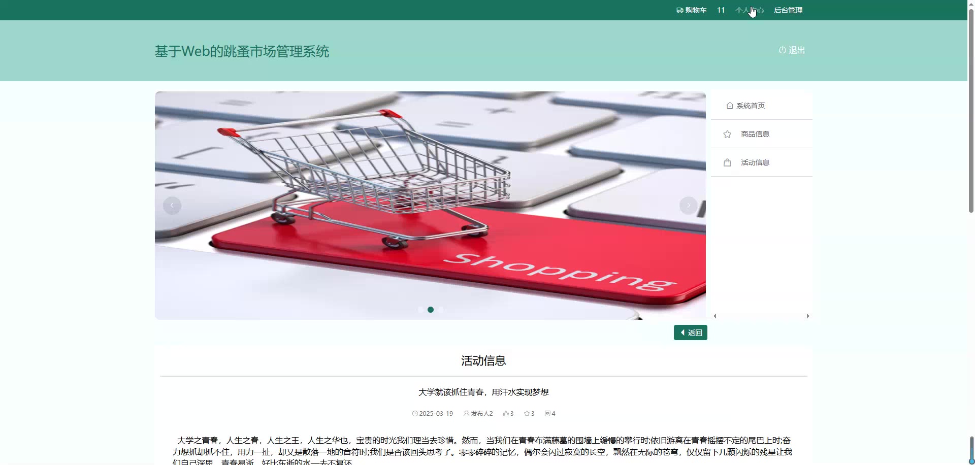 基于Web的SpringBoot+Vue跳蚤市场管理系统源码+答辩PPT+论文springboot1903