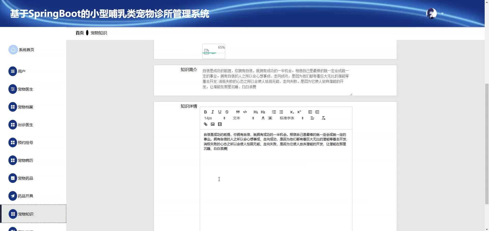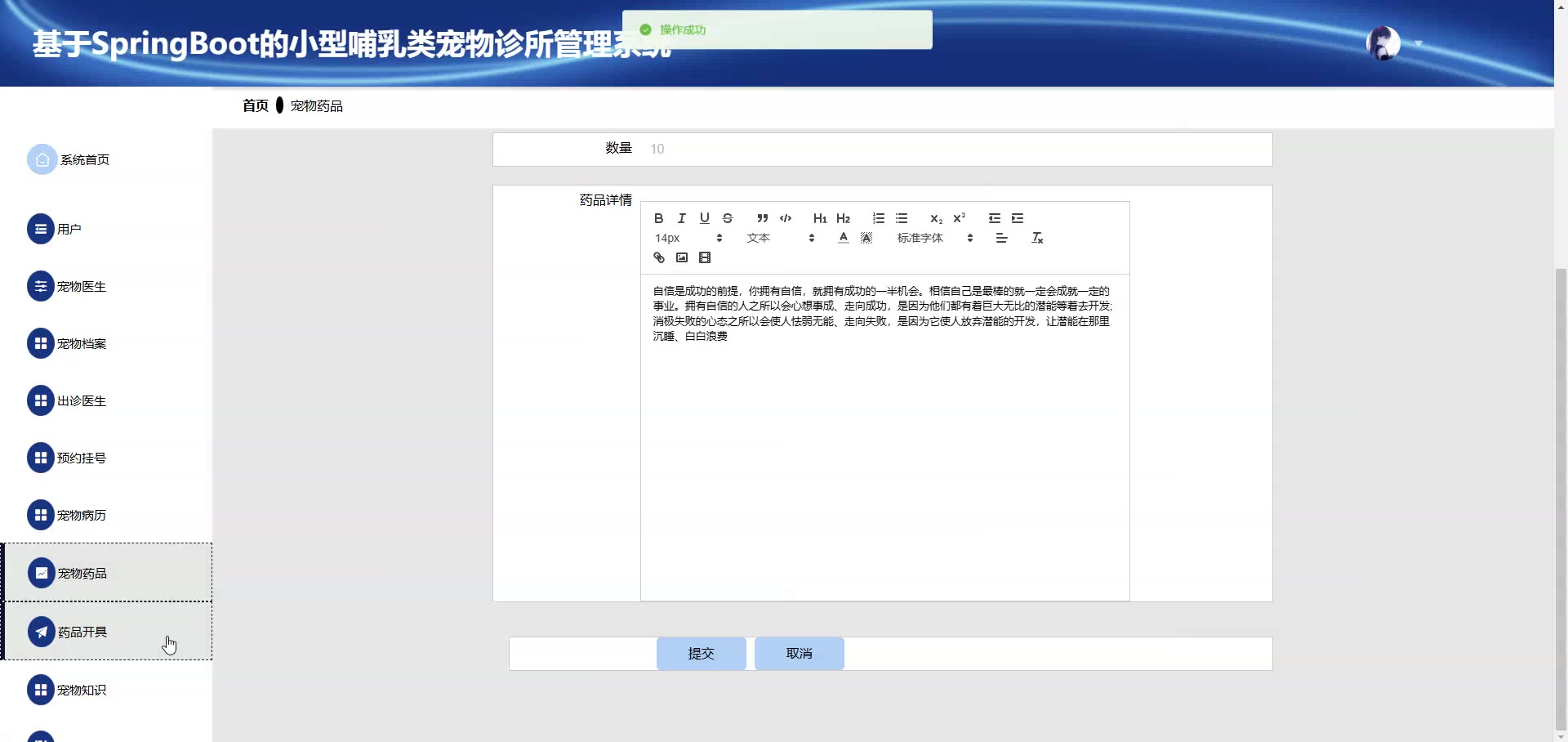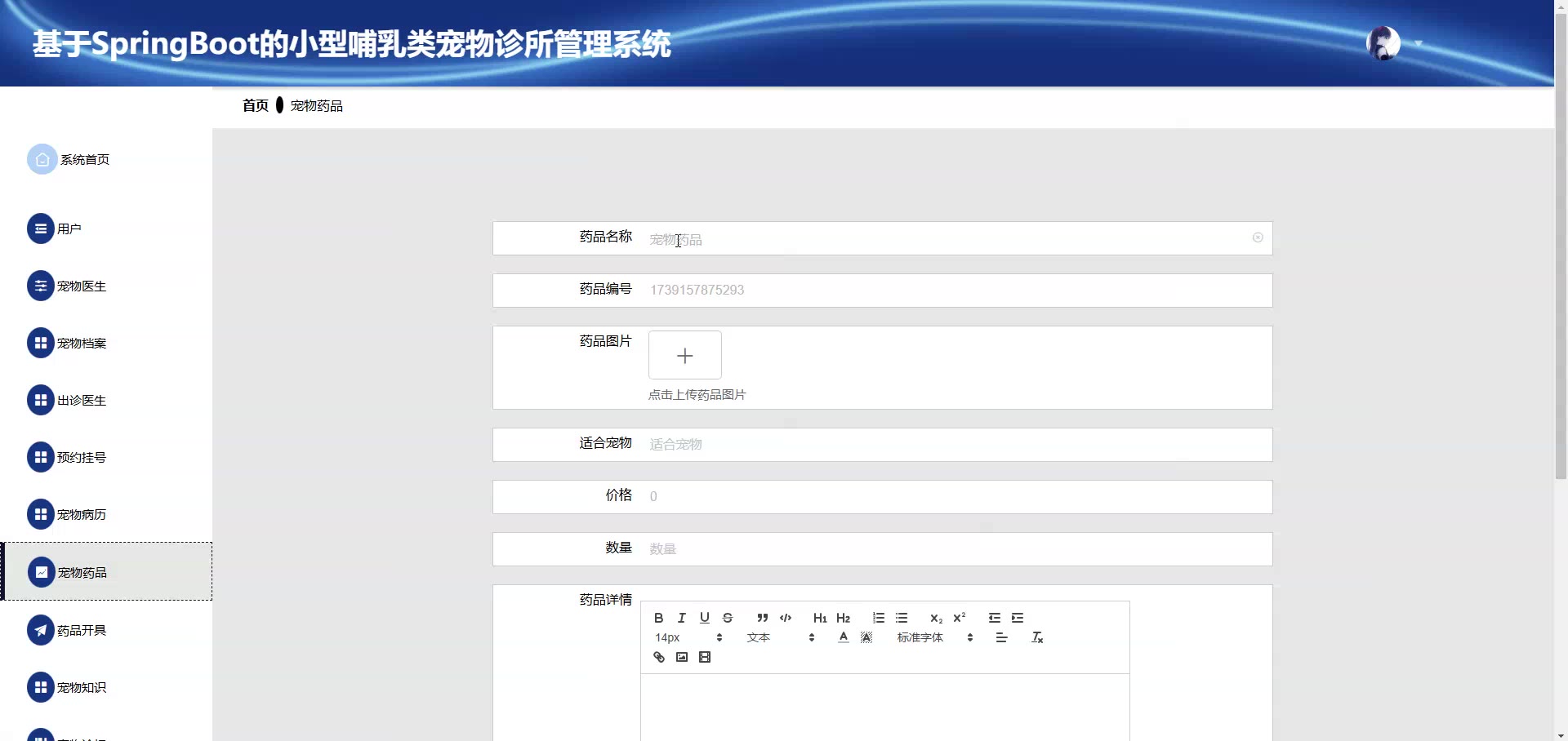 基于SpringBoot Vue小型哺乳类宠物诊所管理系统源码+答辩PPT+论文springboot1920