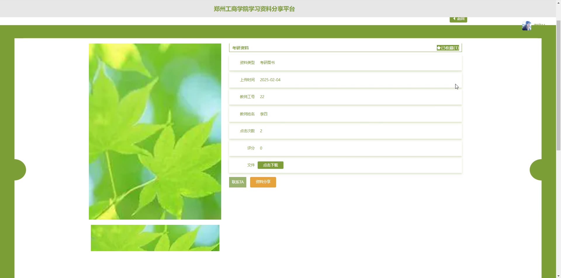 基于SpringBoot Vue学院学习资料分享平台源码+答辩PPT+论文springboot1922