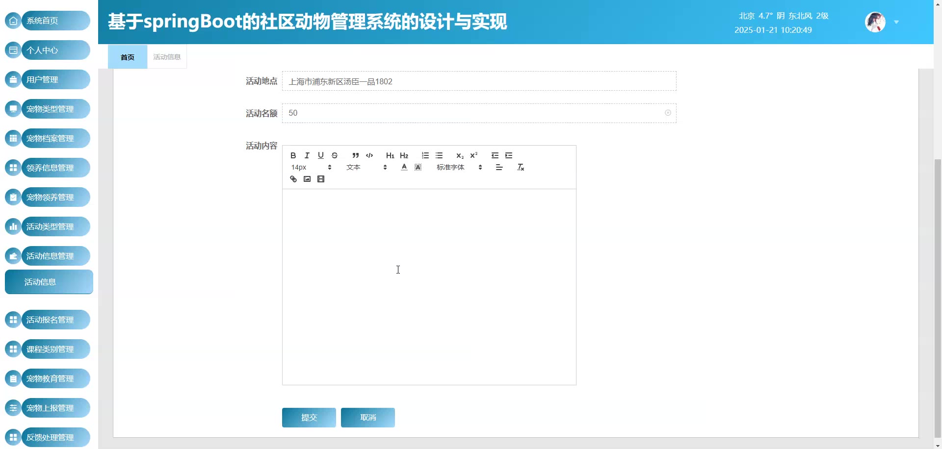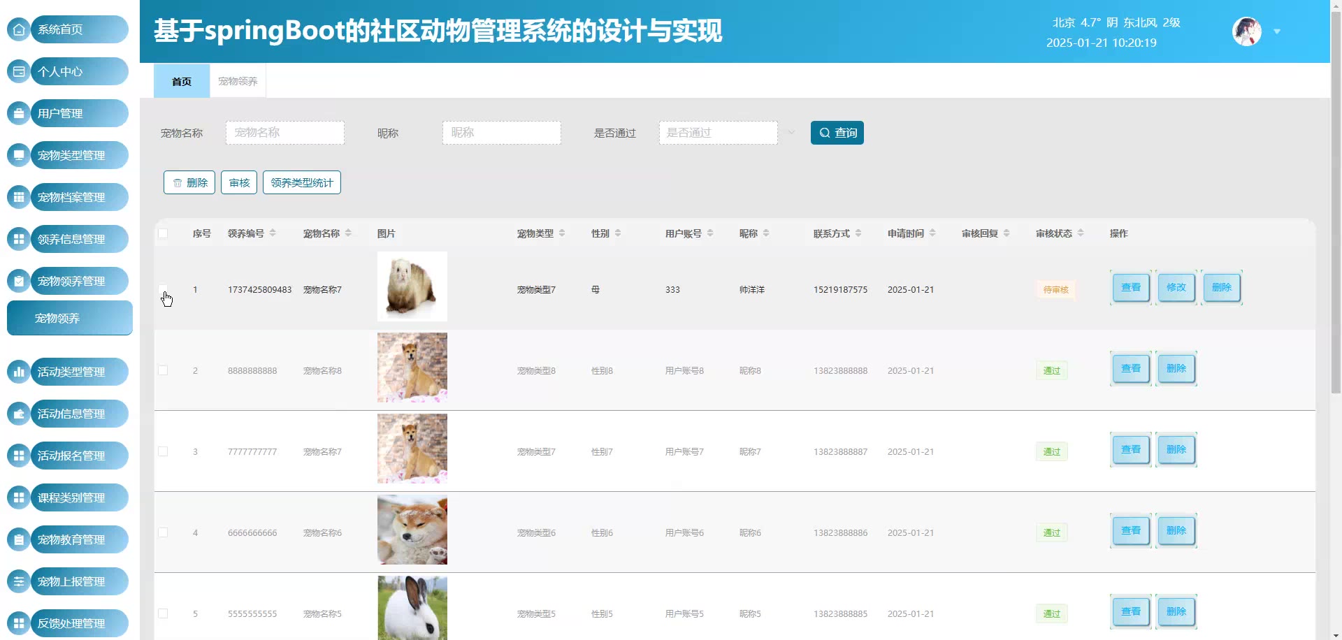基于Springboot Vue社区动物管理系统源码(提供导入教程+讲解)springboot1925