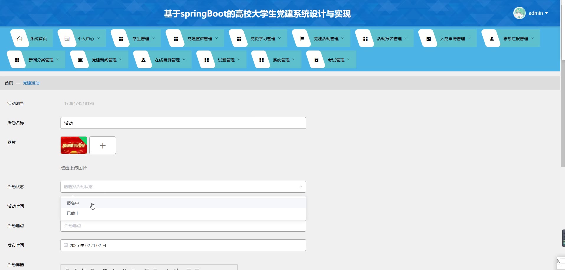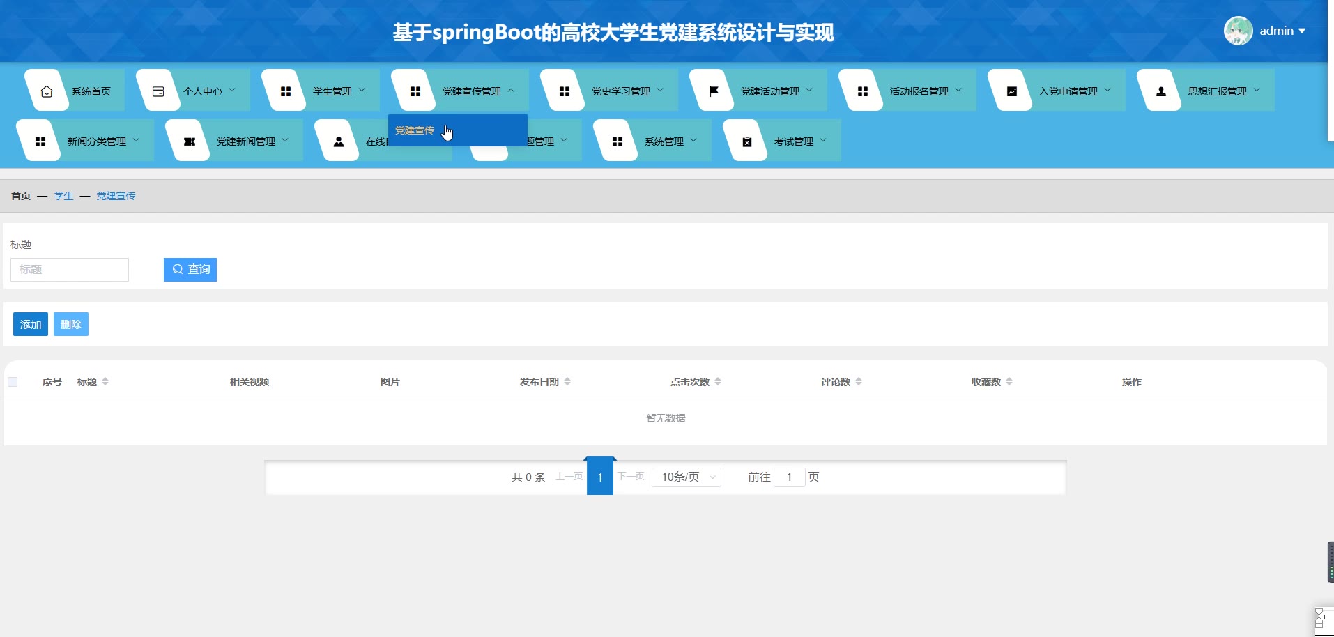 基于SpringBoot Vue的高校大学生党建系统源码(提供导入教程+讲解)springboot1984