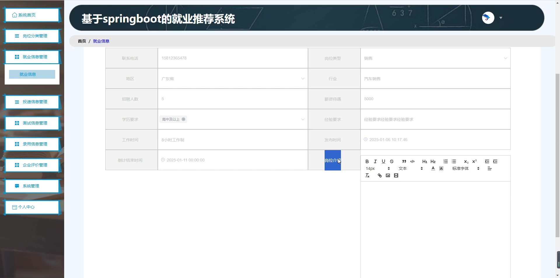 基于SpringBoot Vue的就业推荐系统源码(提供导入教程+讲解)springboot1986