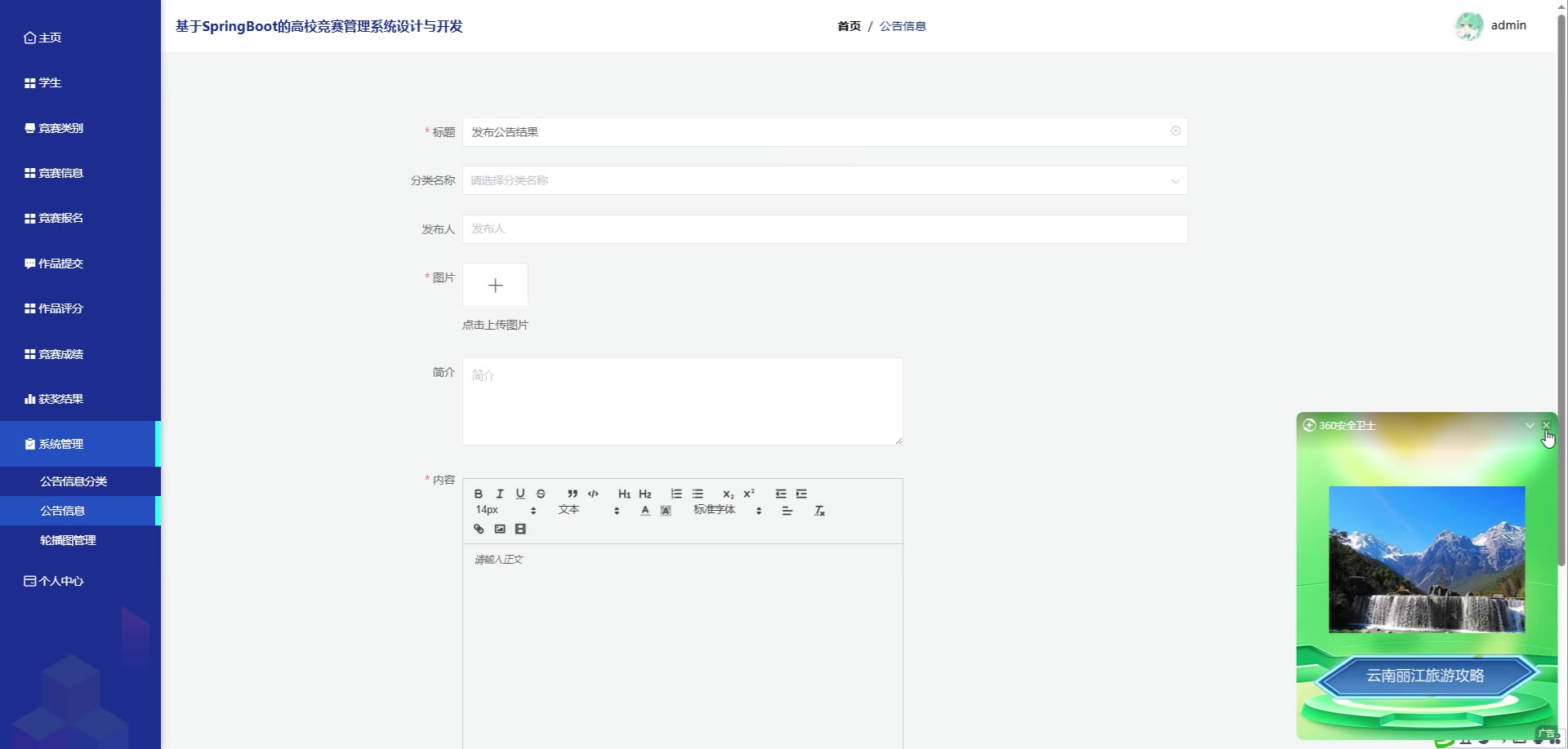 基于SpringBoot Vue的高校竞赛管理系统源码(提供导入教程+讲解)springboot1993