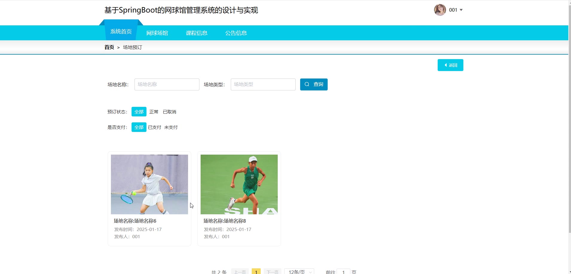 基于SpringBoot Vue的网球馆管理系统源码(提供导入教程+讲解)springboot1997