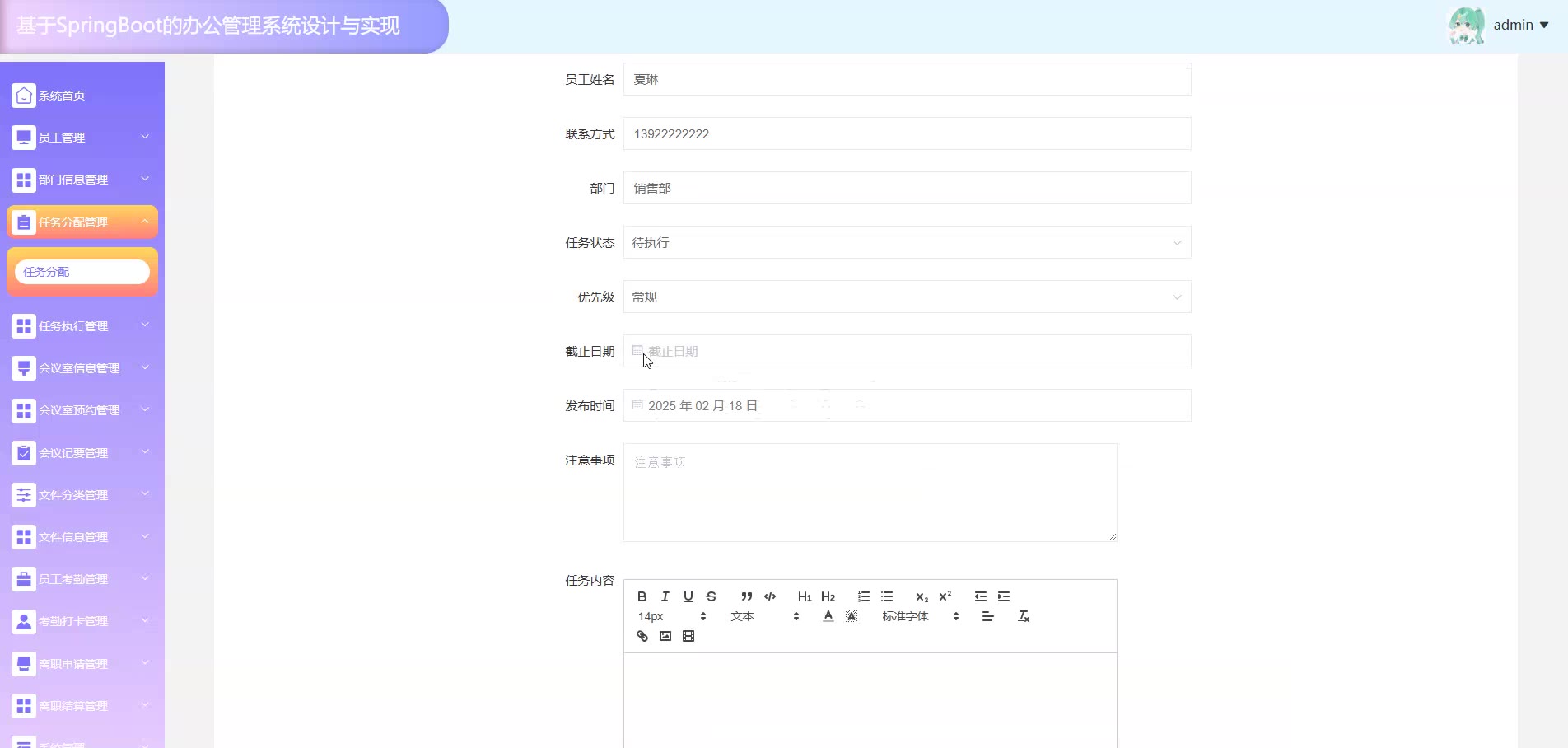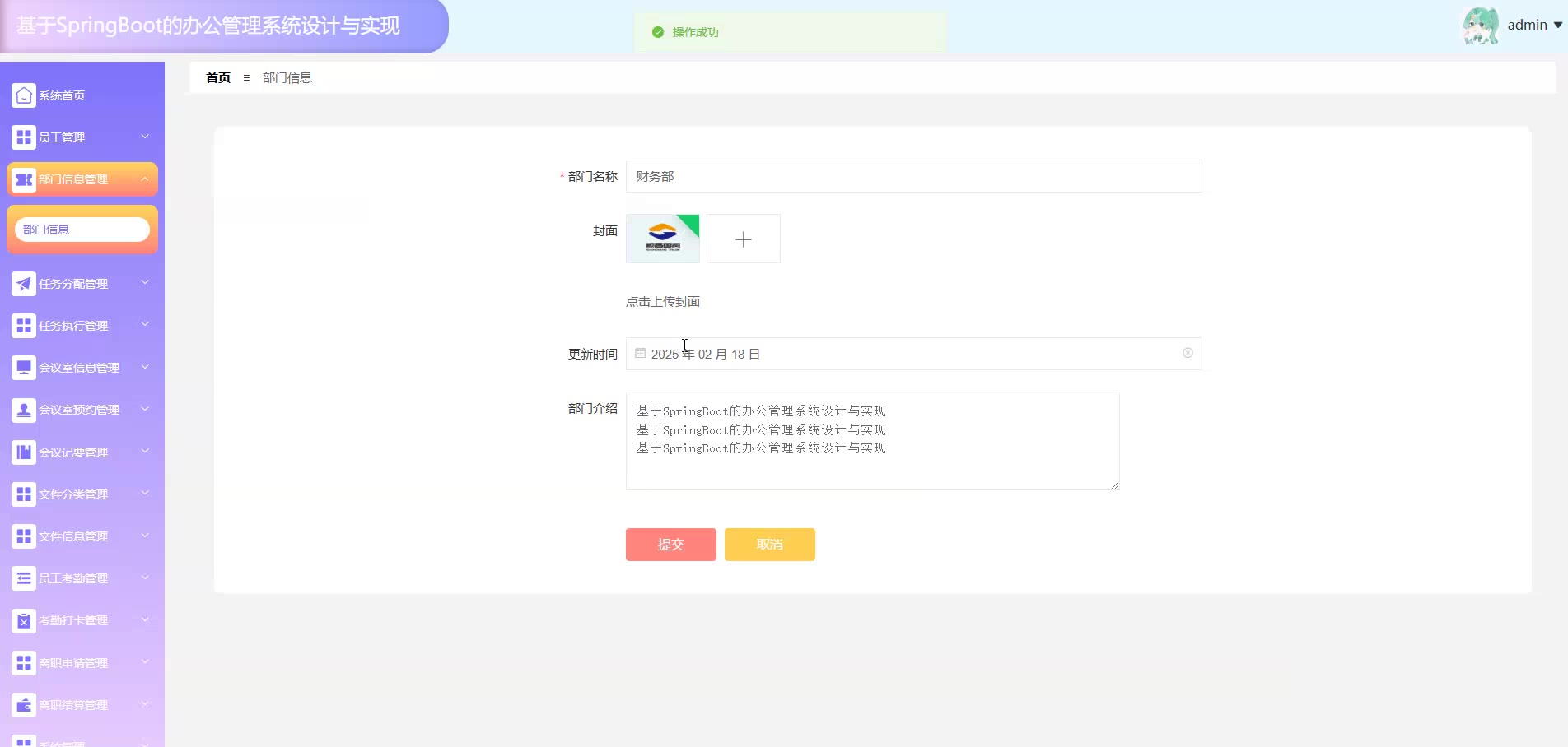 基于SpringBoot Vue的办公管理系统源码(提供导入教程+讲解)springboot2003