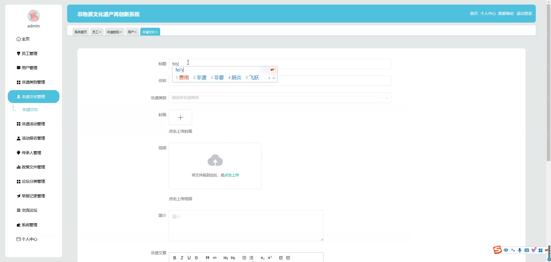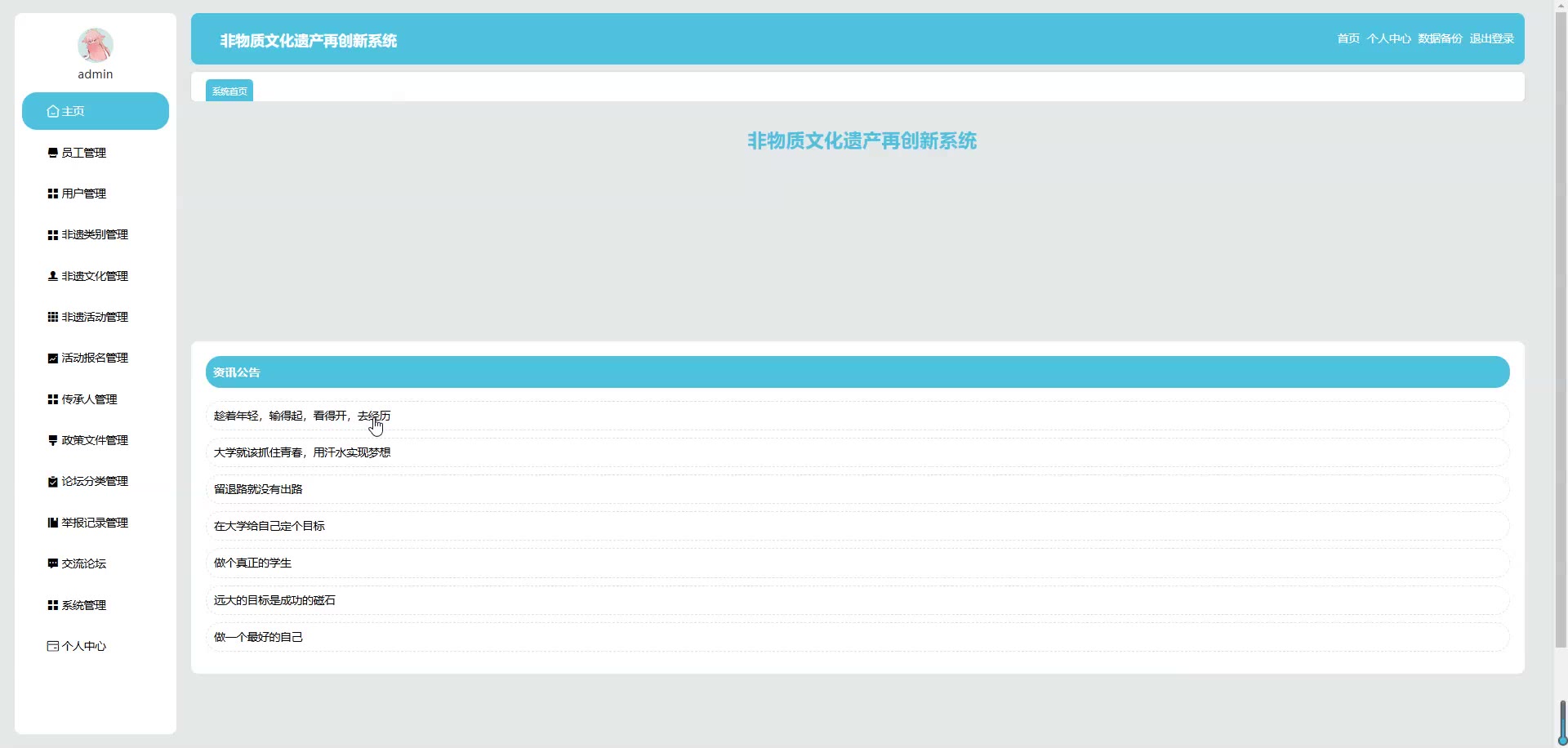基于SpringBoot Vue的非物质文化遗产再创新系统源码(提供导入教程+讲解)springboot2015