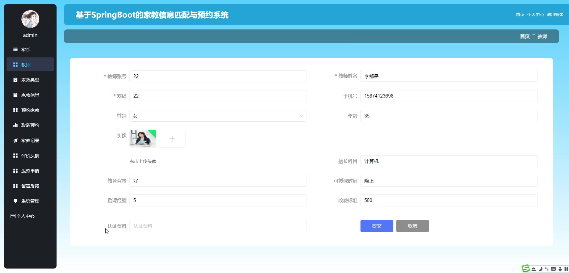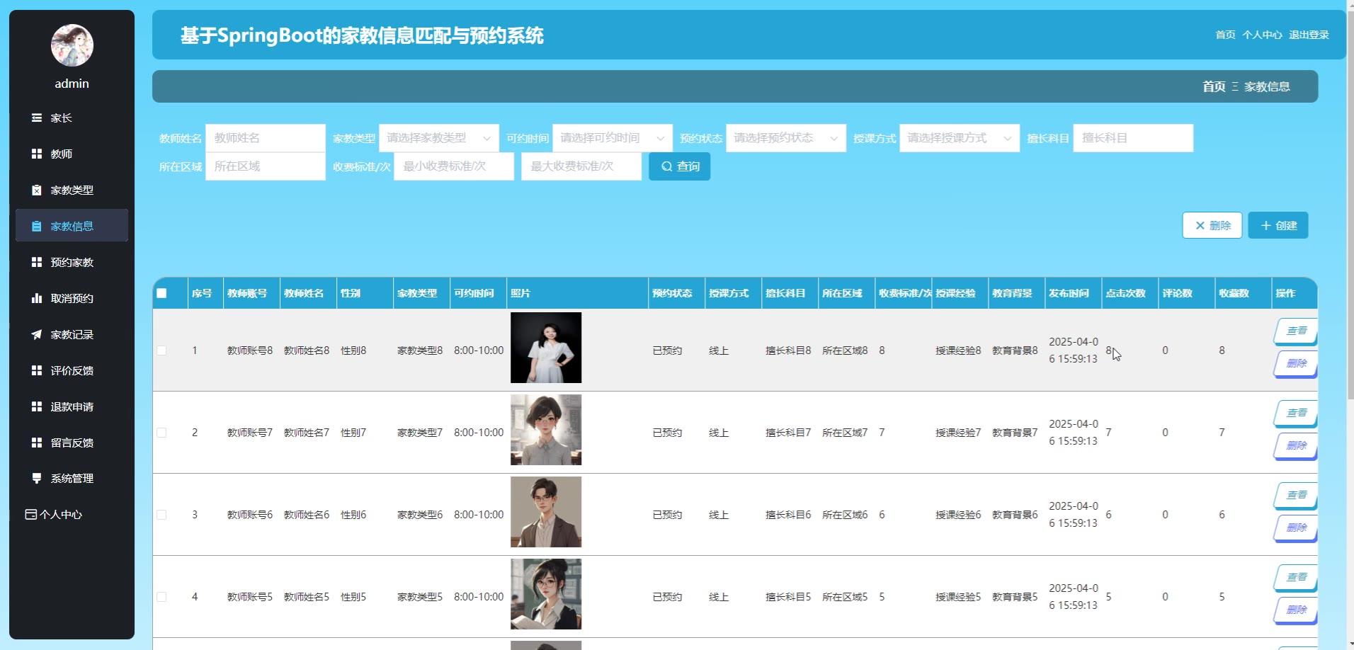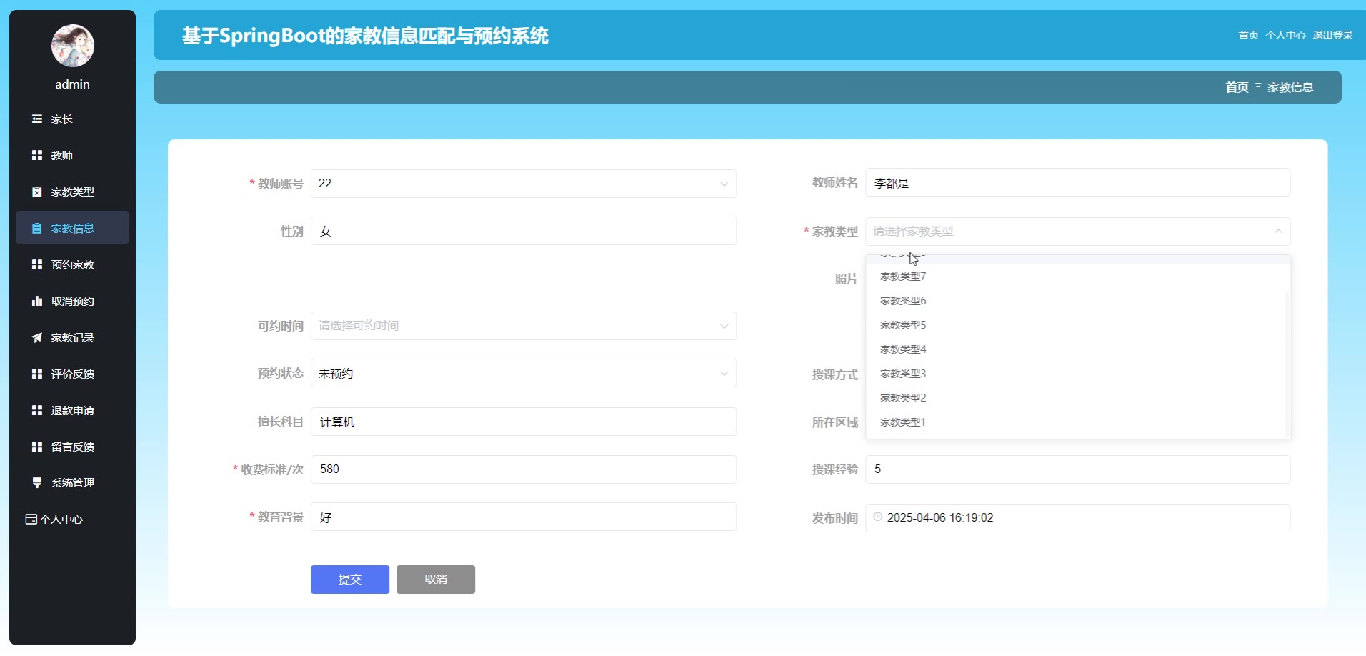 基于SpringBoot Vue的家教信息匹配与预约系统源码(提供导入教程+讲解)springboot2062