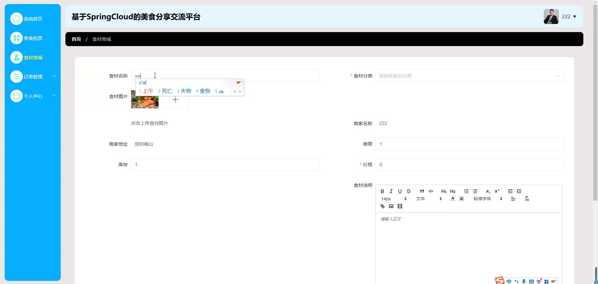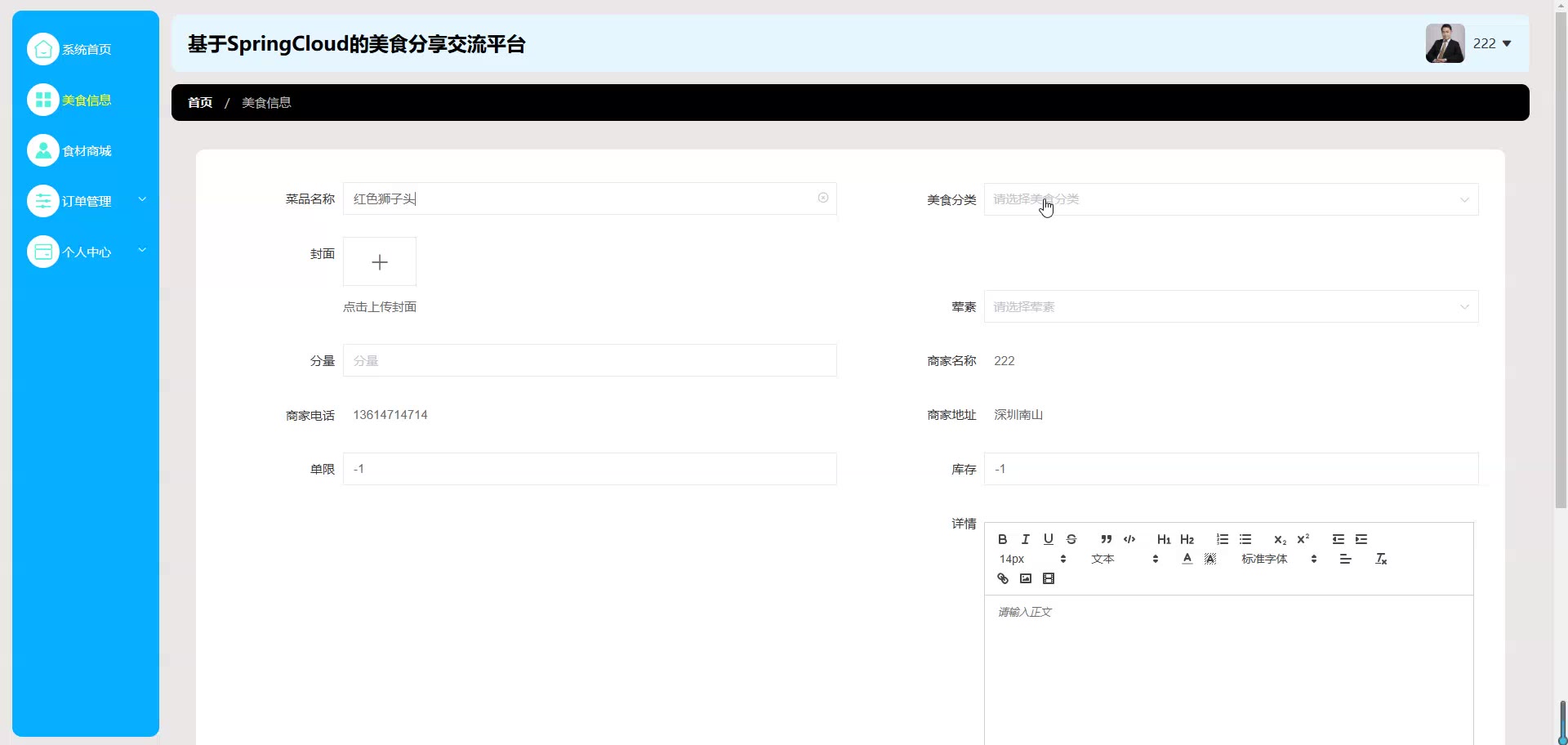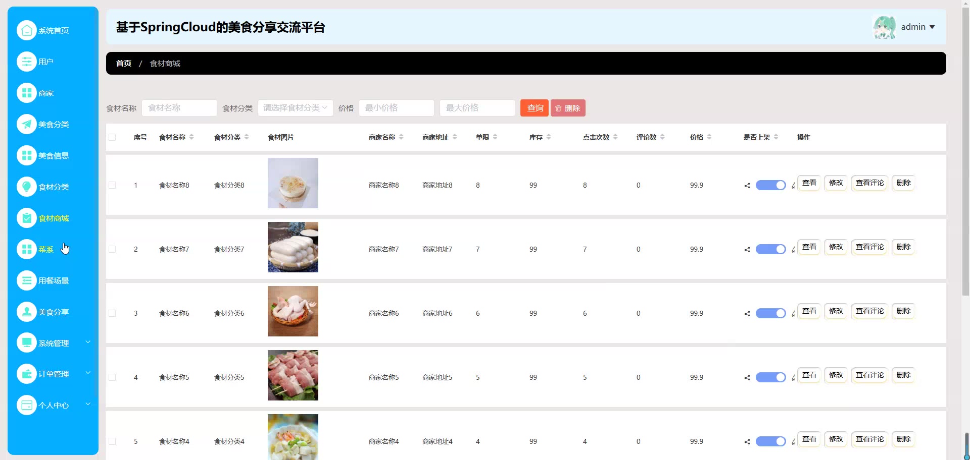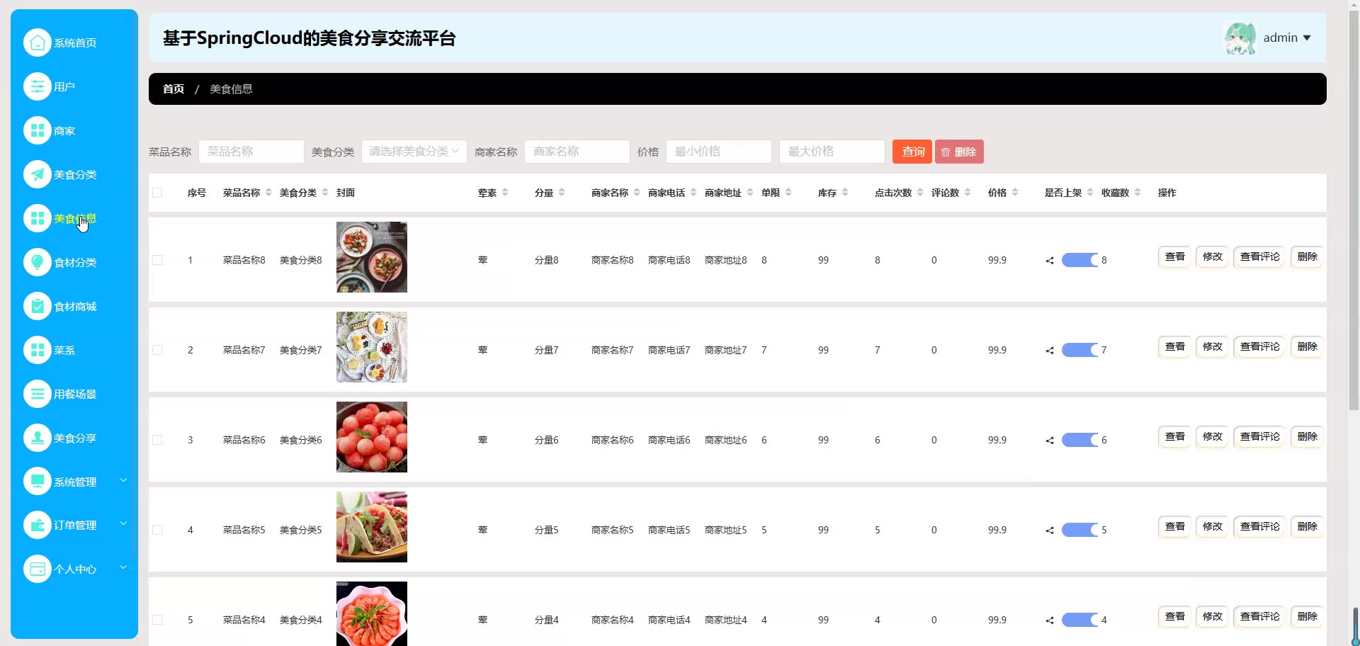 基于SpringCloud Vue的美食分享交流平台源码(提供导入教程+讲解)springboot2066