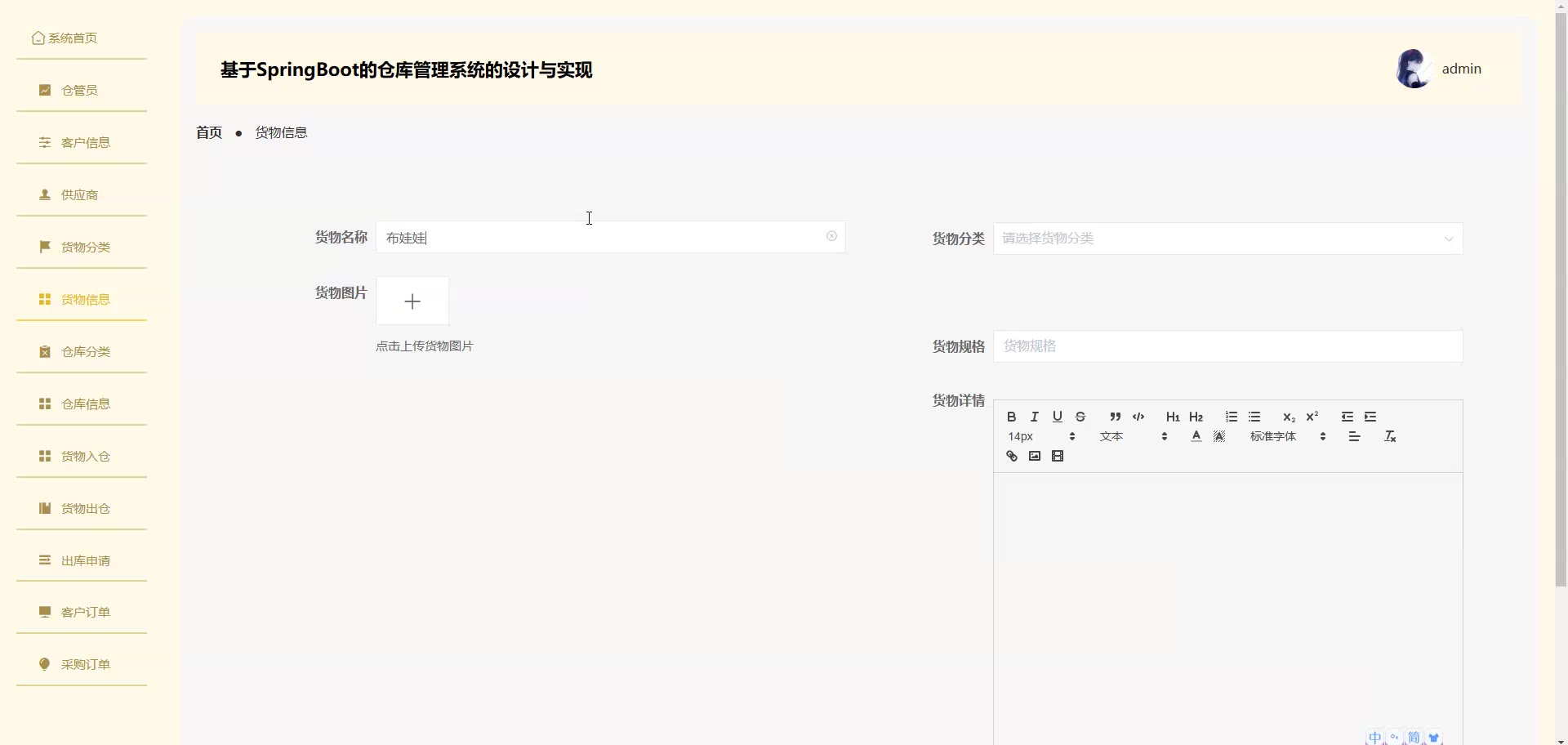 基于SpringBoot Vue的仓库管理系统源码(提供导入教程+讲解)springboot2111