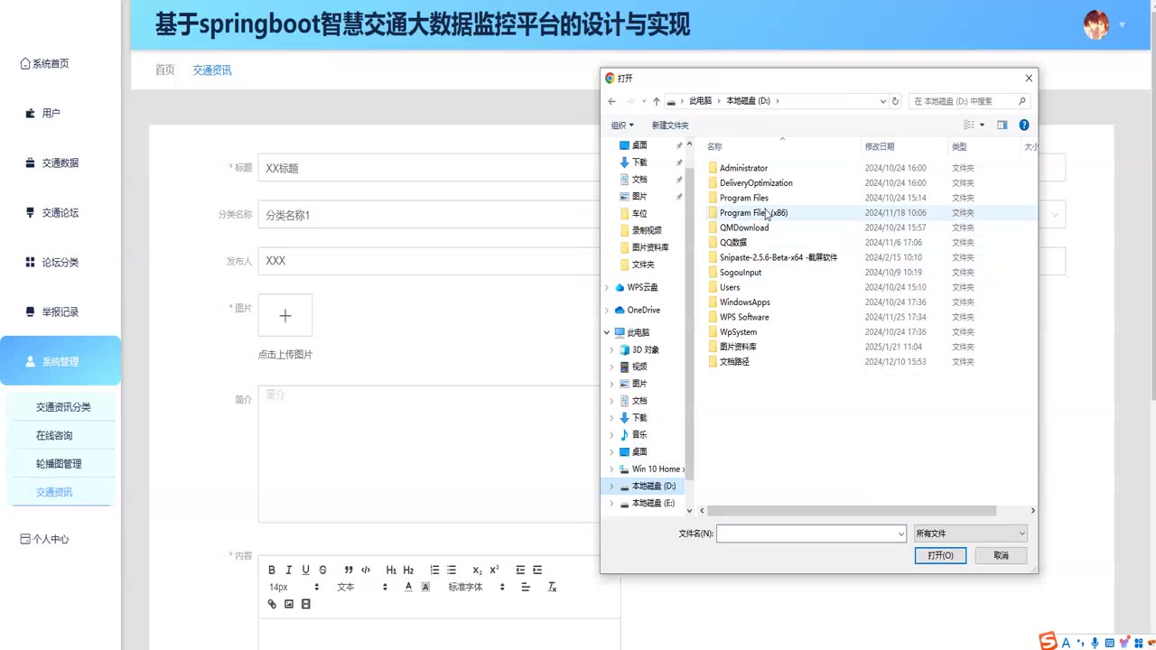 基于SpringBoot Vue的智慧交通大数据监控平台源码(提供导入教程+讲解)springboot2113