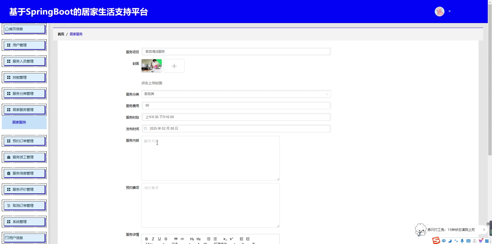 智能AI+基于SpringBoot Vue的居家生活支持平台源码(提供导入教程+讲解)springboot2120