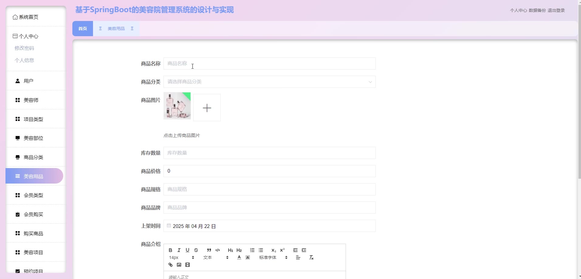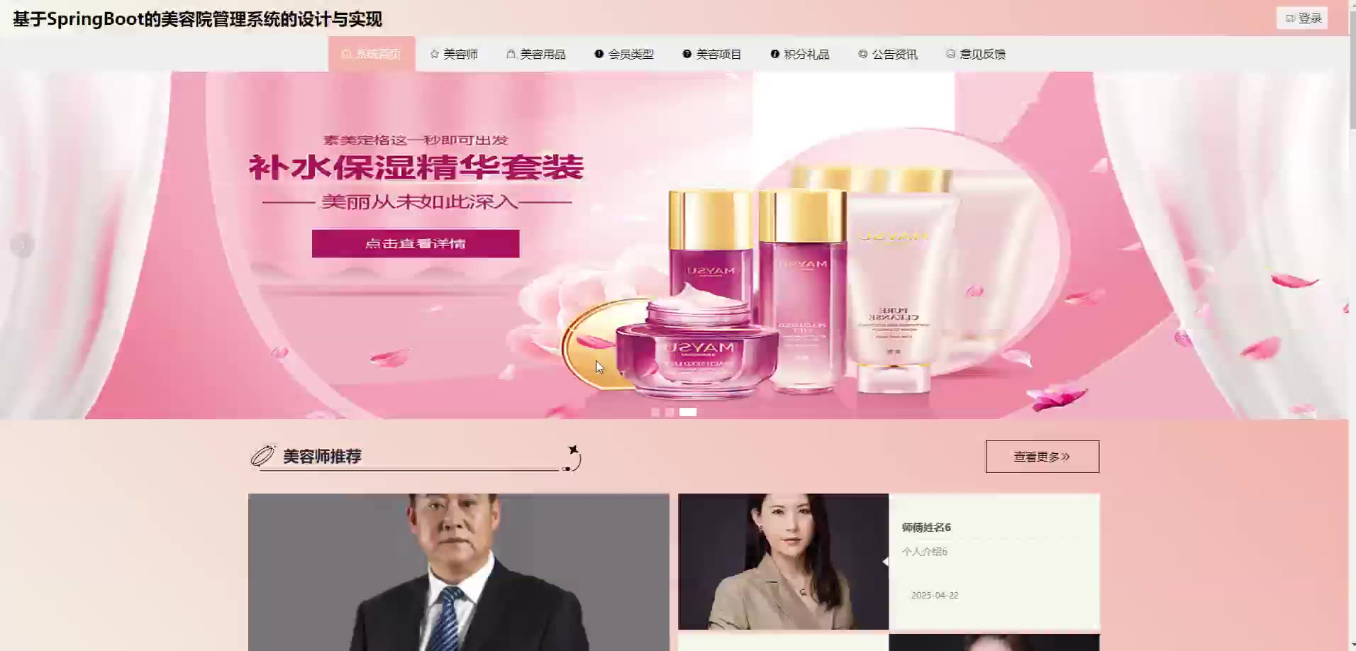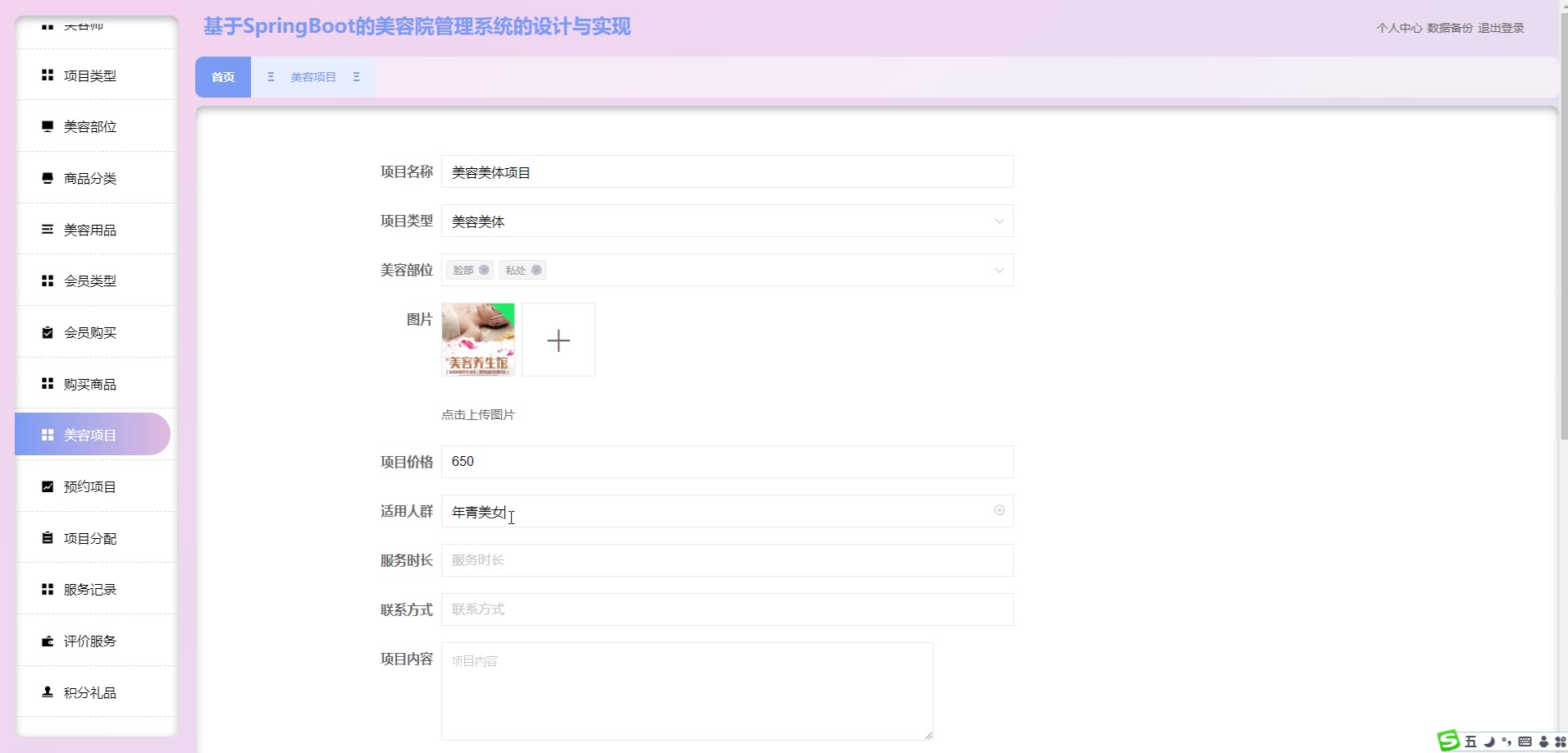 基于SpringBoot Vue的美容院管理系统源码(提供导入教程+讲解)springboot2127