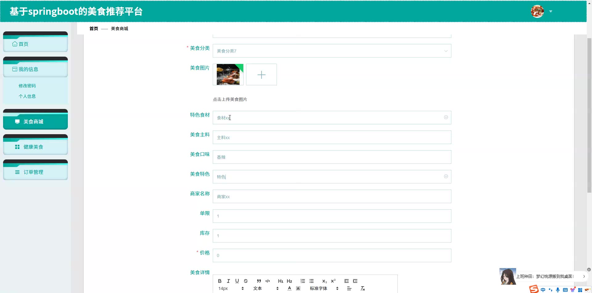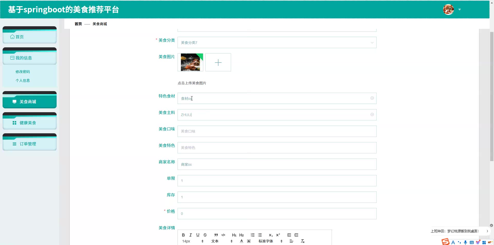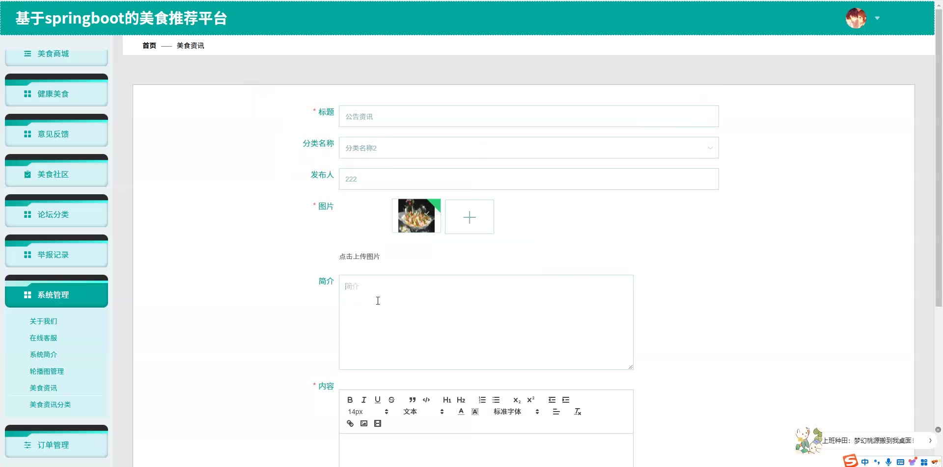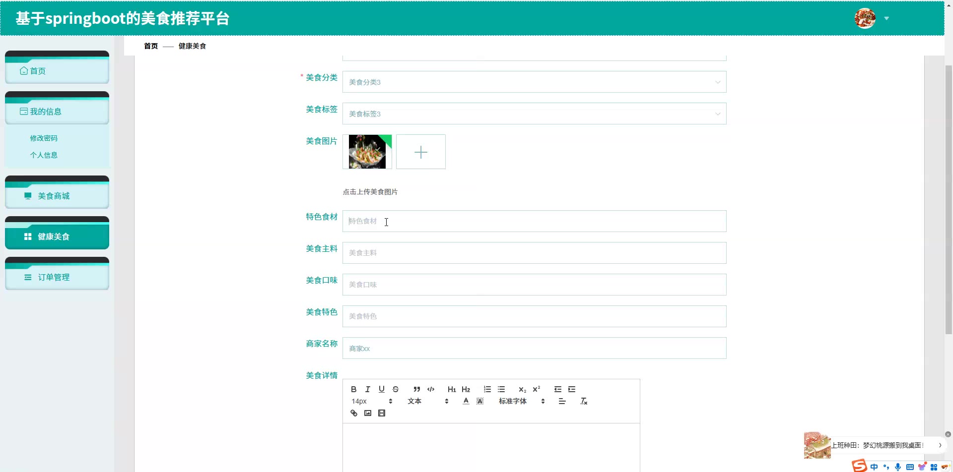 基于SpringBoot Vue的美食推荐平台源码(提供导入教程+讲解)springboot2128
