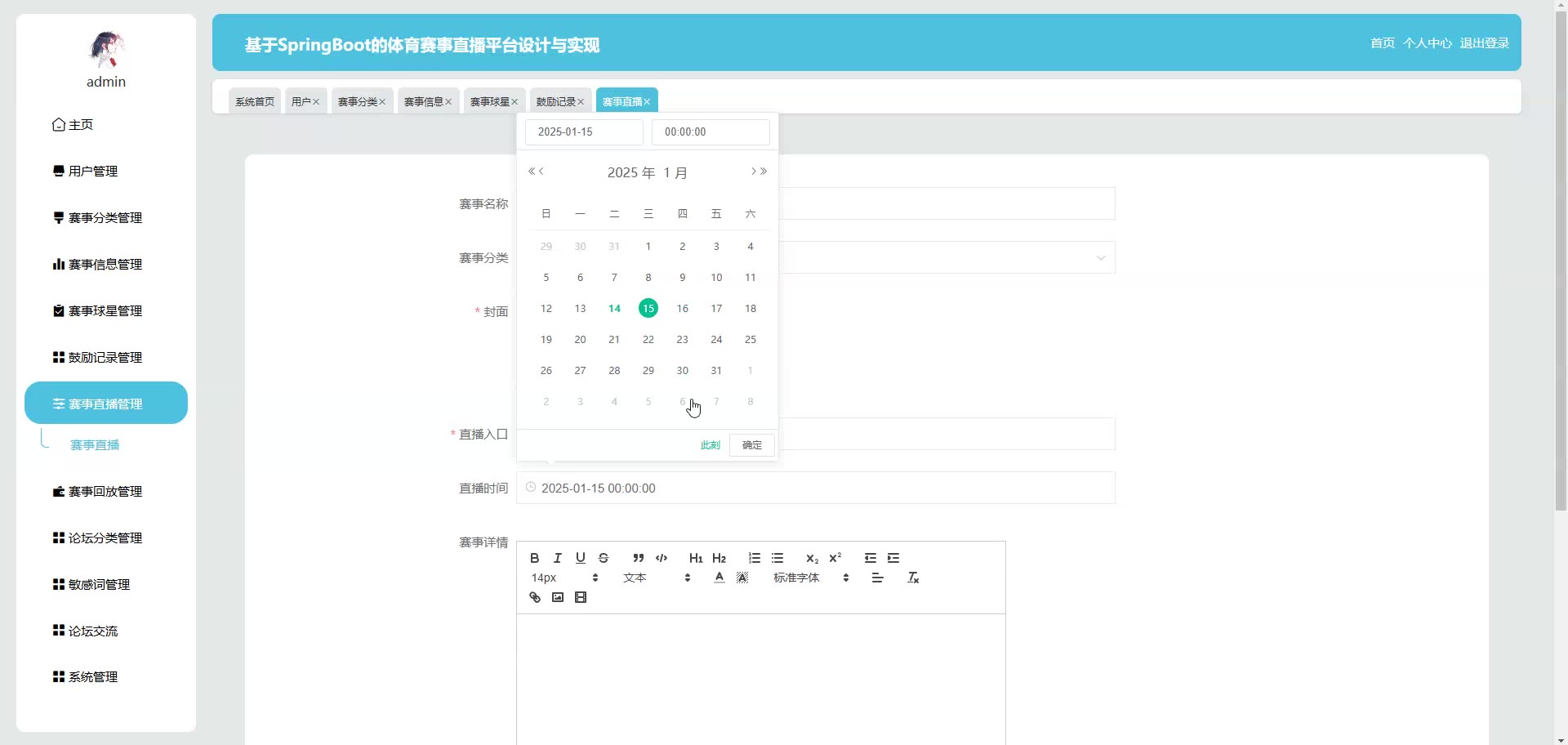 基于SpringBoot Vue的体育赛事直播平台源码(提供导入教程+讲解)springboot2131