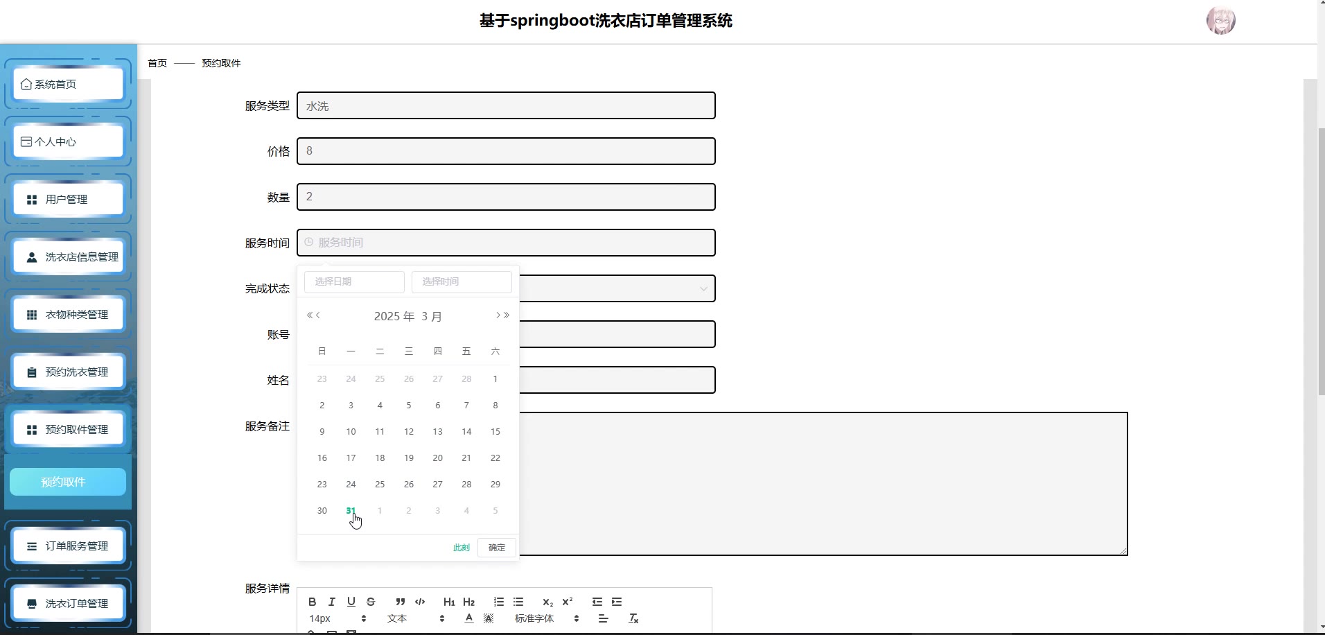 基于SpringBoot Vue的洗衣店订单管理系统源码(提供导入教程+讲解)springboot2146