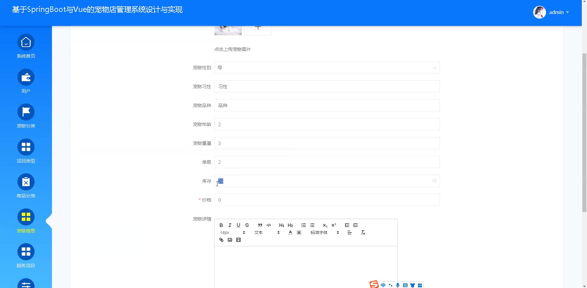 基于SpringBoot与Vue的宠物店管理系统源码(提供导入教程+讲解)springboot2147