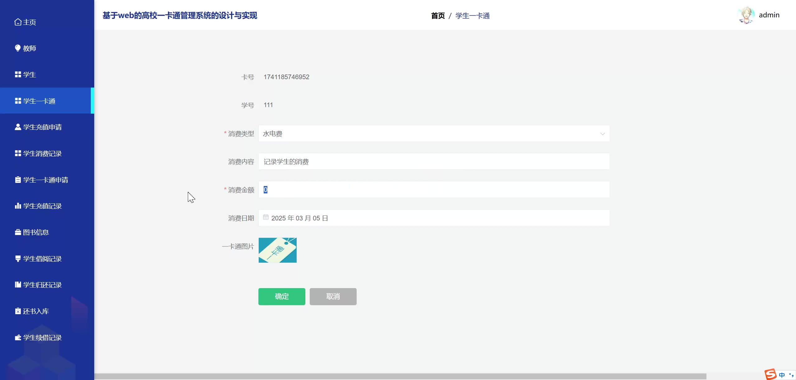 基于web的SpringBoot Vue高校一卡通管理系统源码(提供导入教程+讲解)springboot2152