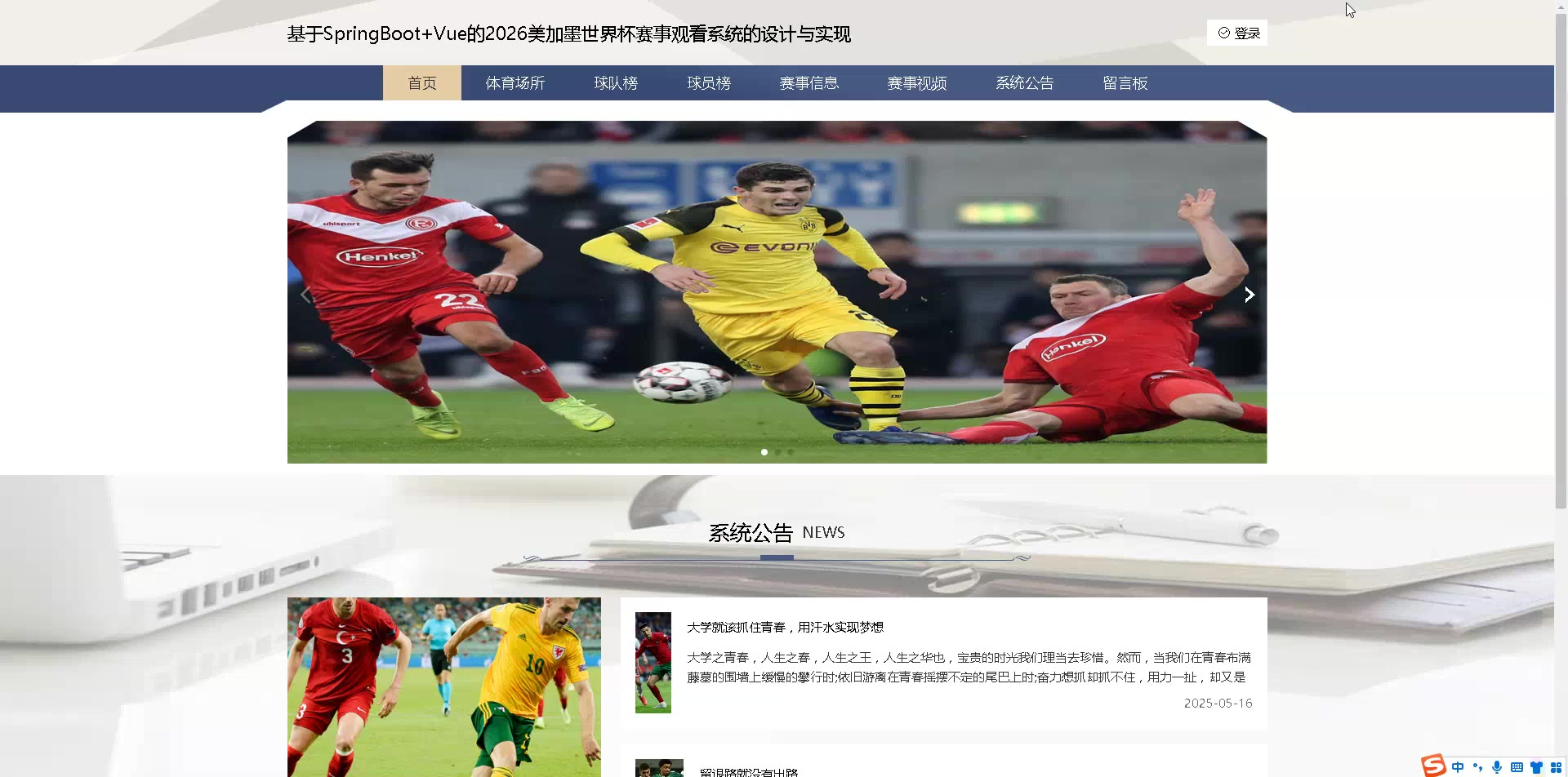 基于SpringBoot+Vue的美加墨世界杯赛事观看系统源码(提供导入教程+讲解)springboot2257