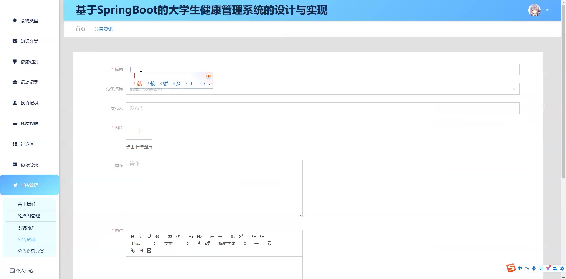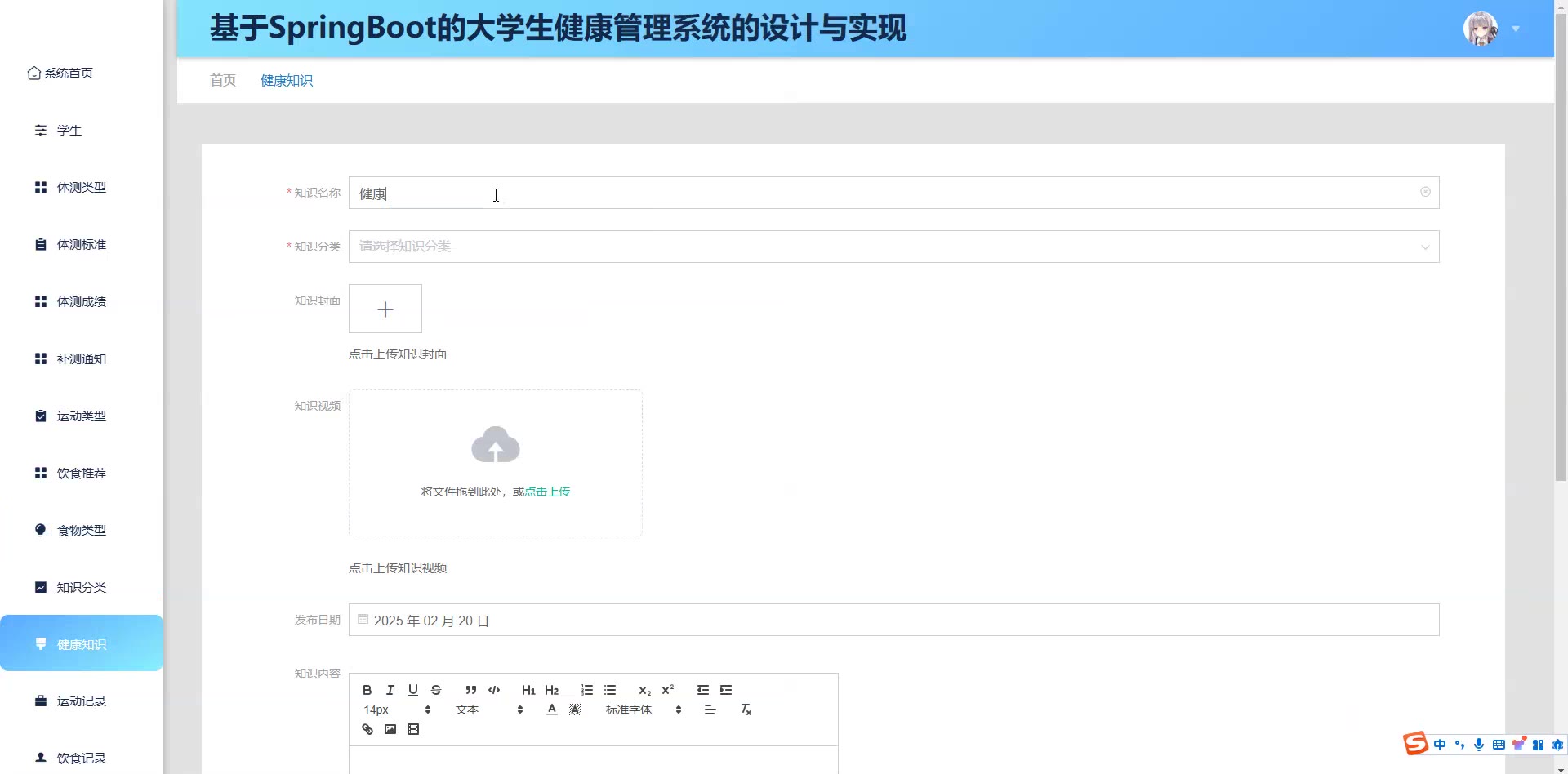 基于SpringBoot的大学生健康管理系统源码(提供导入教程+讲解)springboot2269