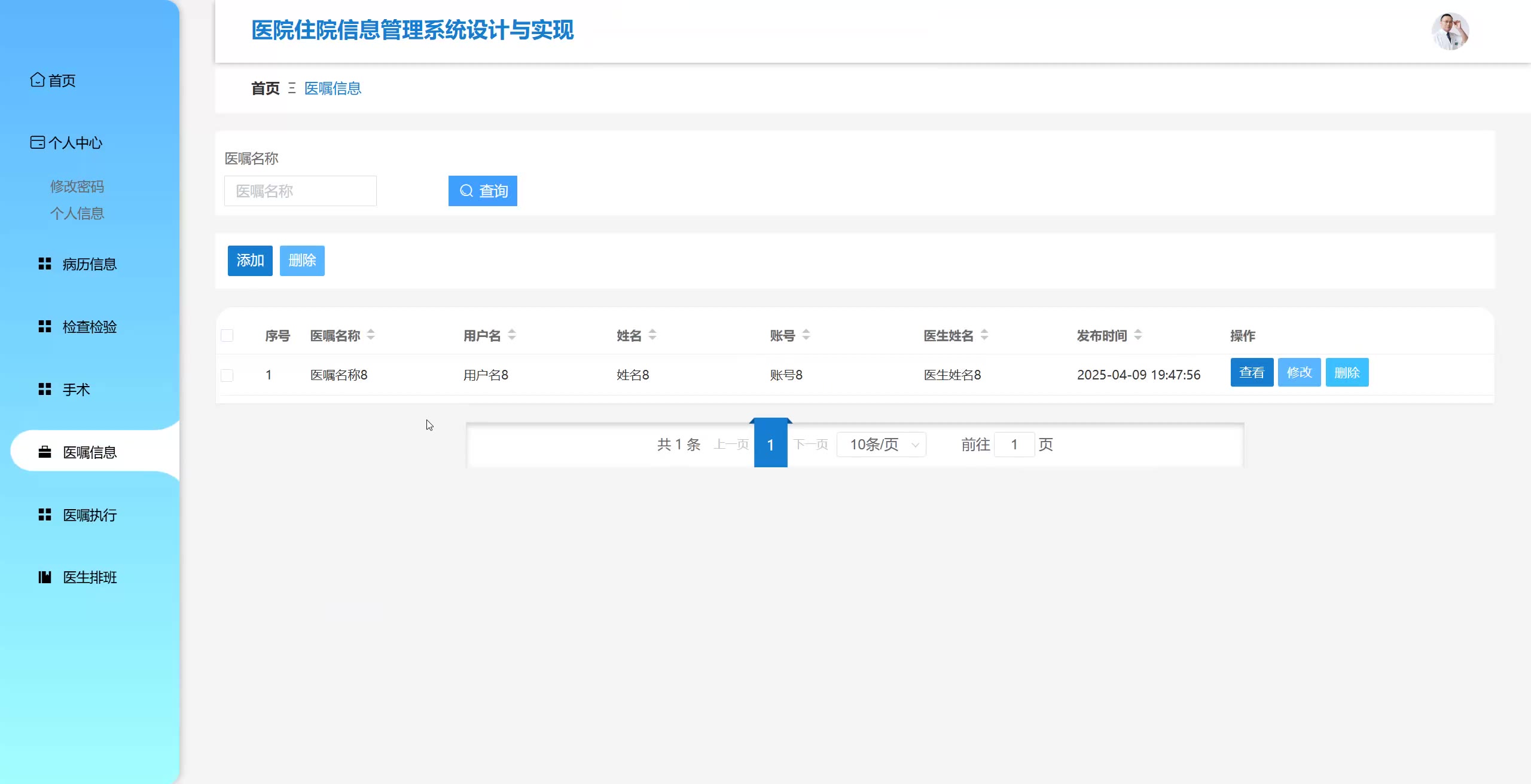 基于SpringBoot Vue医院住院信息管理系统源码(提供导入教程+讲解)springboot2290