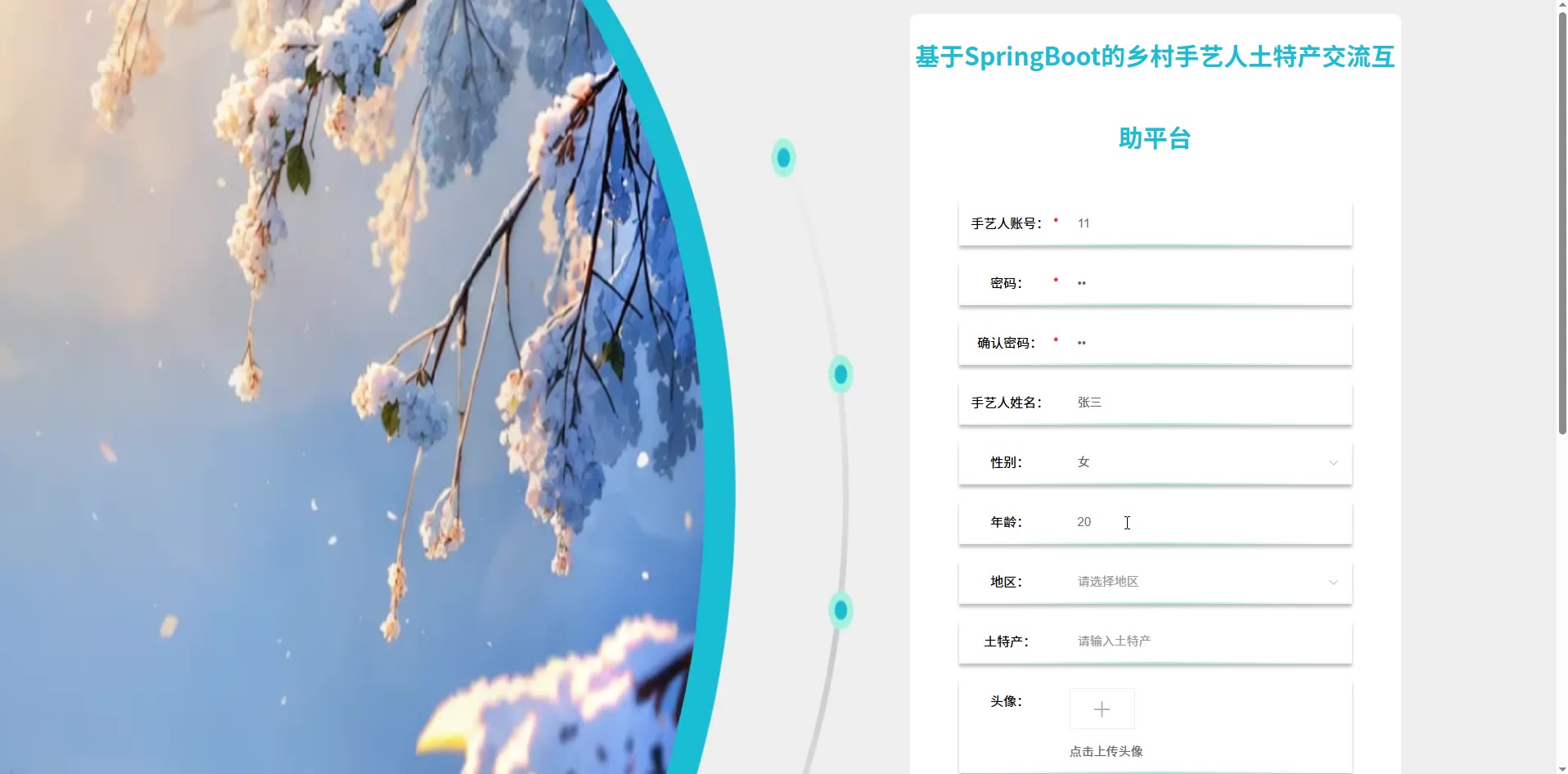 基于SpringBoot的乡村手艺人土特产交流互助平台源码(提供导入教程+讲解)springboot2291